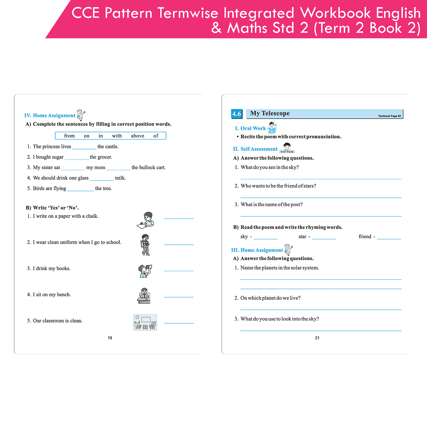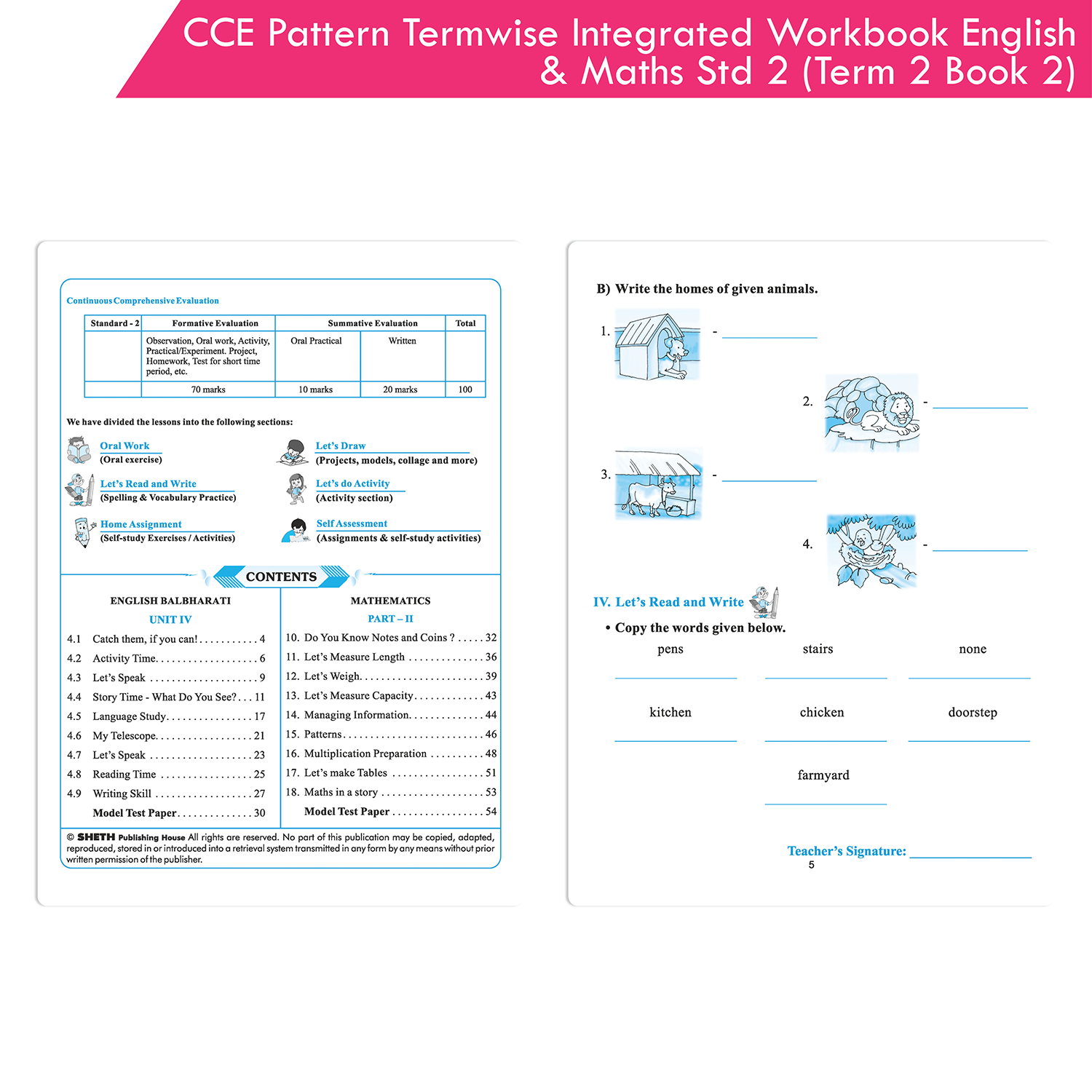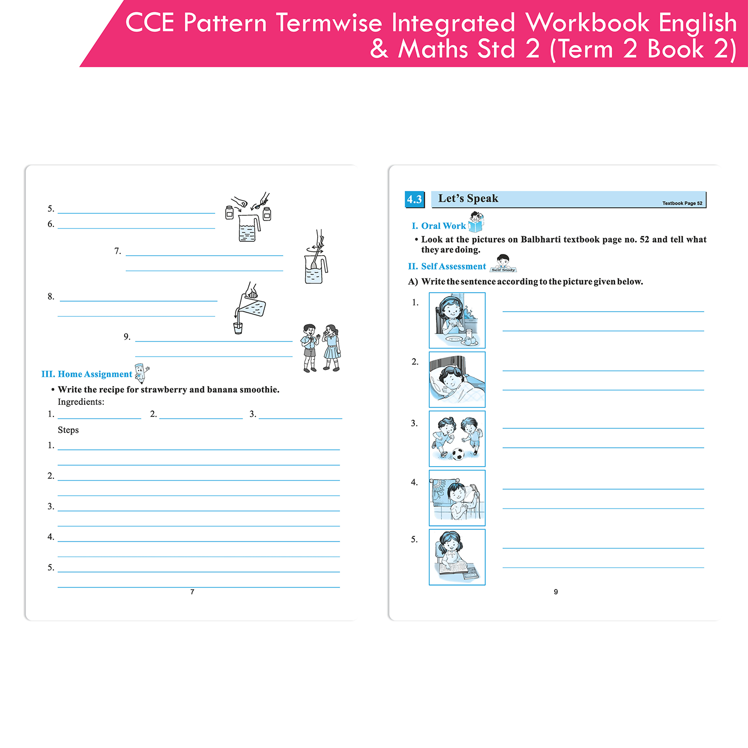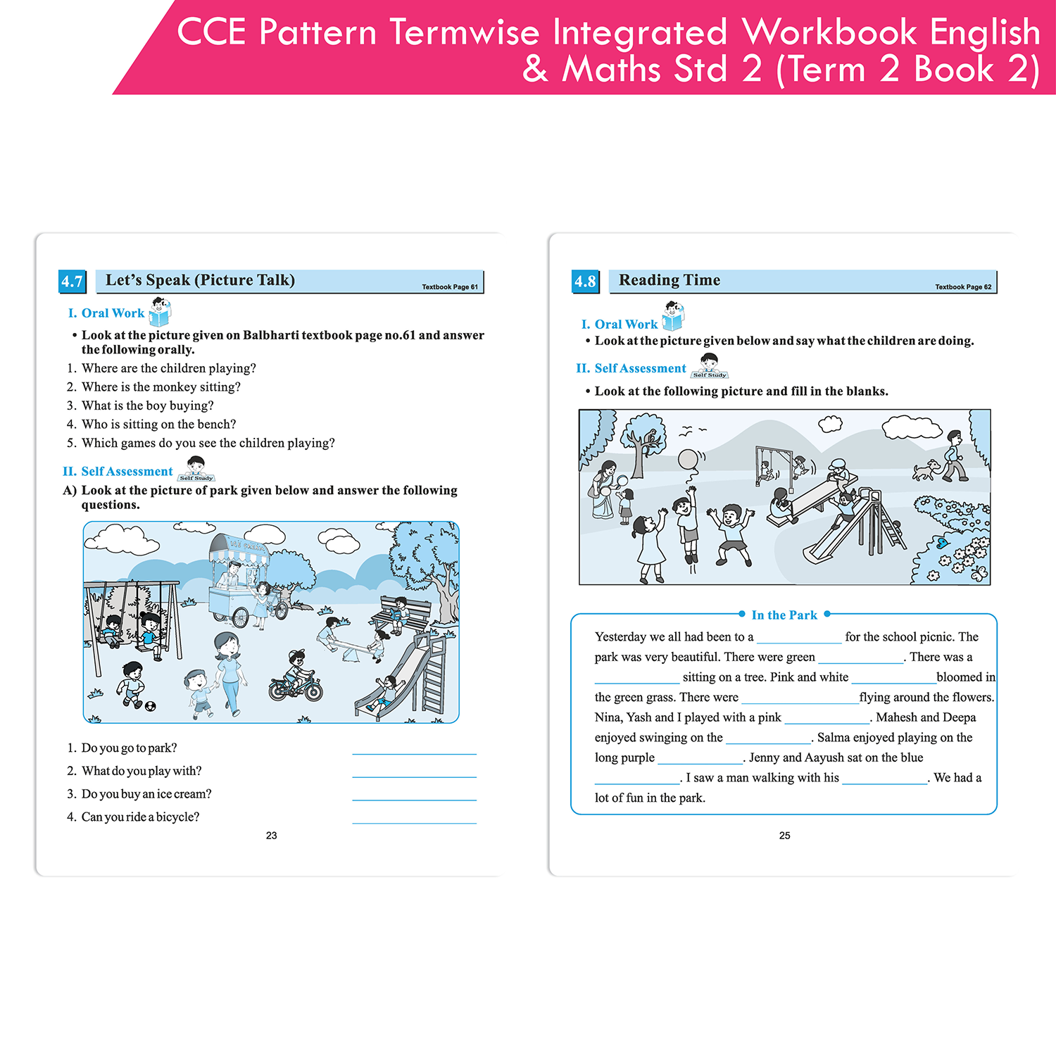 Our Workbook ‘Termwise English Balbharati and Mathematics Workbook for Standard 2 Term 2 Book 2’ based on the CCE pattern is designed to realise the above objectives. Through a variety of tools, we have tried to shift emphasis from mere testing to holistic learning. It aims at ensuring that the students bid adieu to rote learning, cramming and relentless mugging to joyful learning.