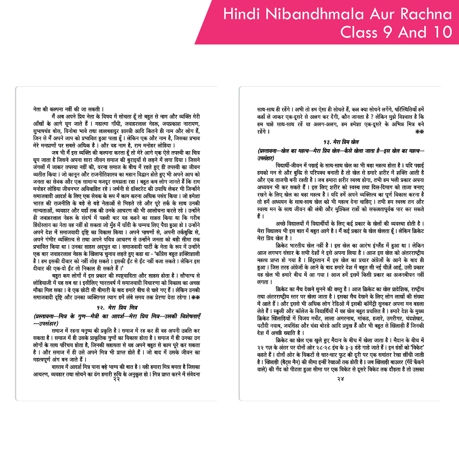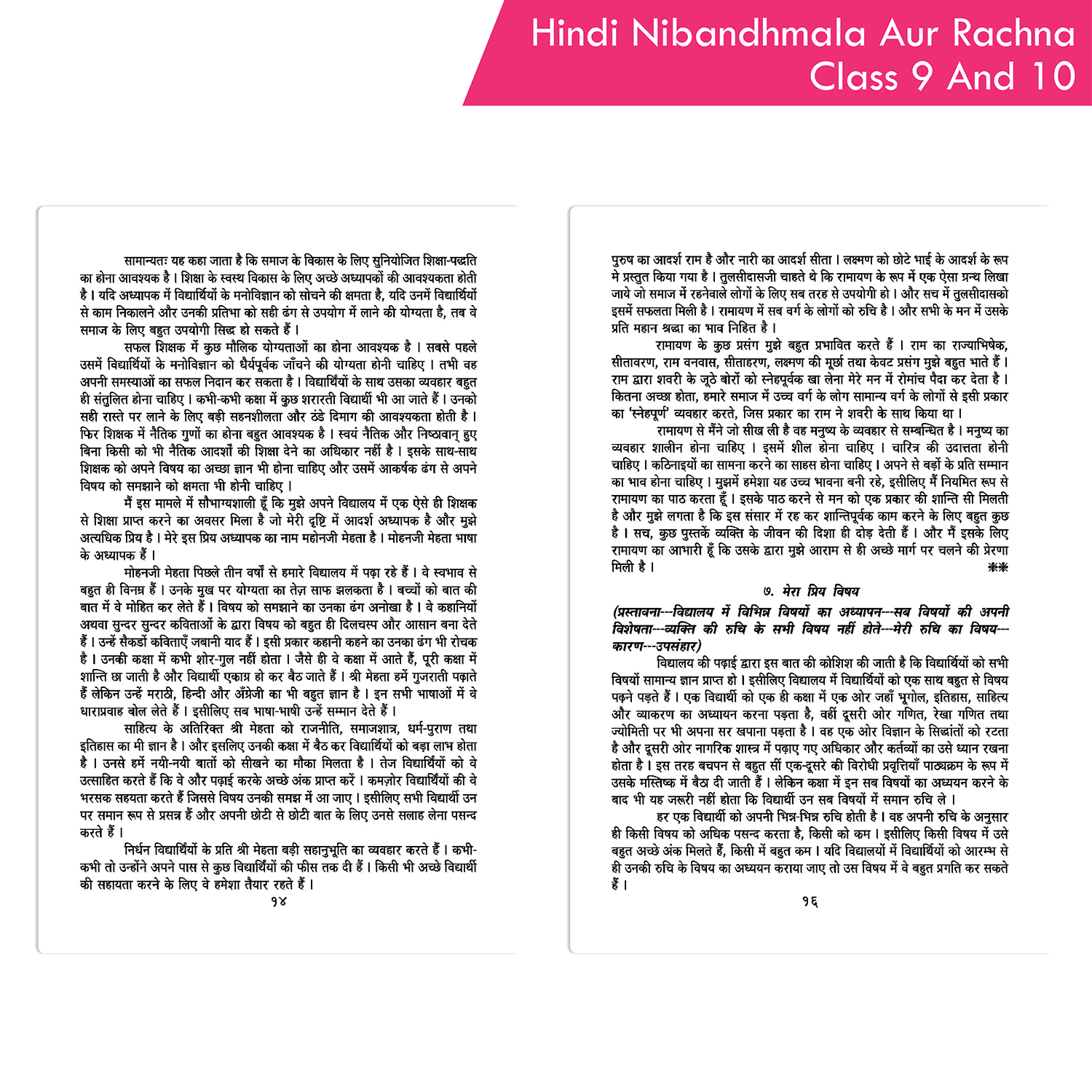 The Hindi Nibandhmala aur Rachana Class 9 and 10 by Shethbooks is an exceptional essay book featuring a diverse collection of essays on literary, political, social, personal, scientific, educational, and other important topics. Carefully curated to meet the needs of students, this book aims to provide a comprehensive understanding of various subjects through well-crafted essays. Each essay is designed to enhance students’ knowledge, writing skills, and critical thinking.
