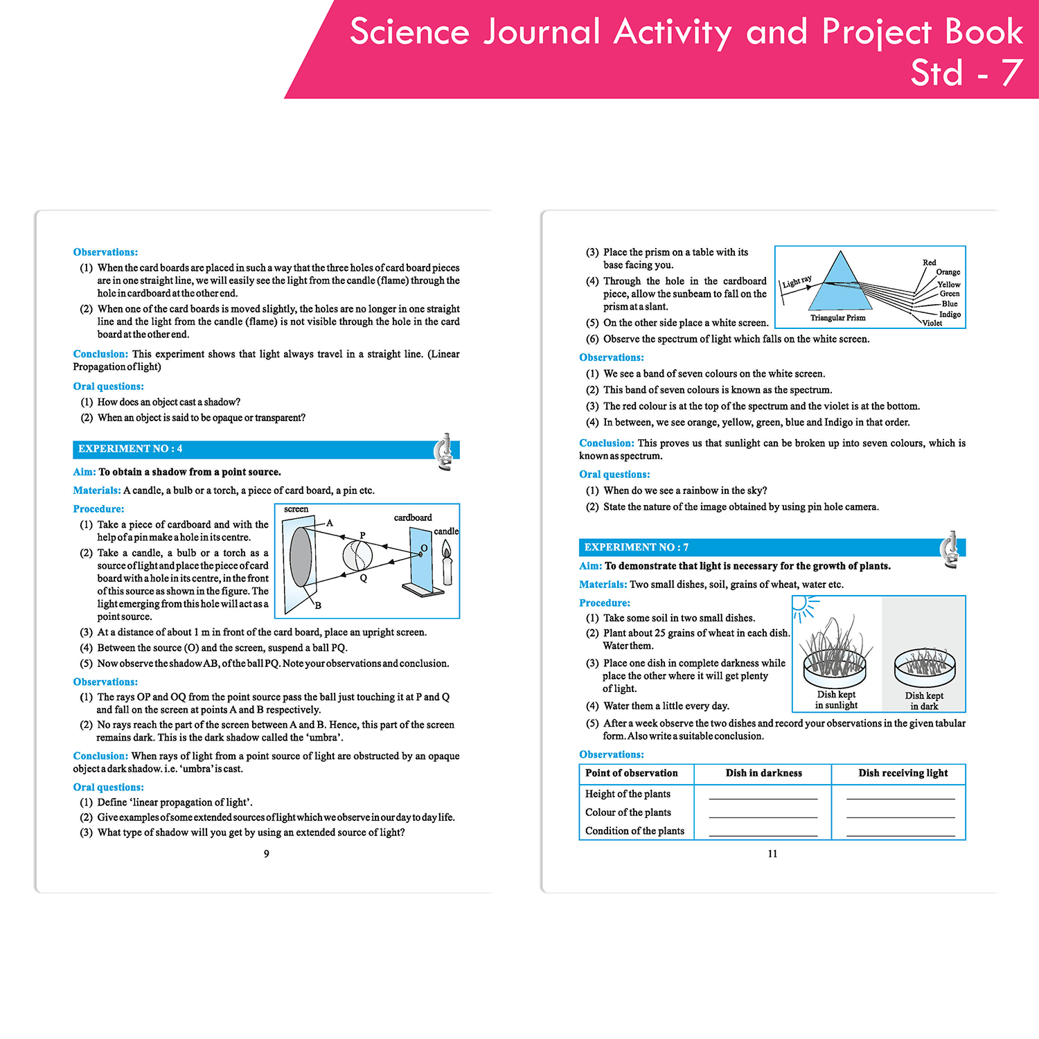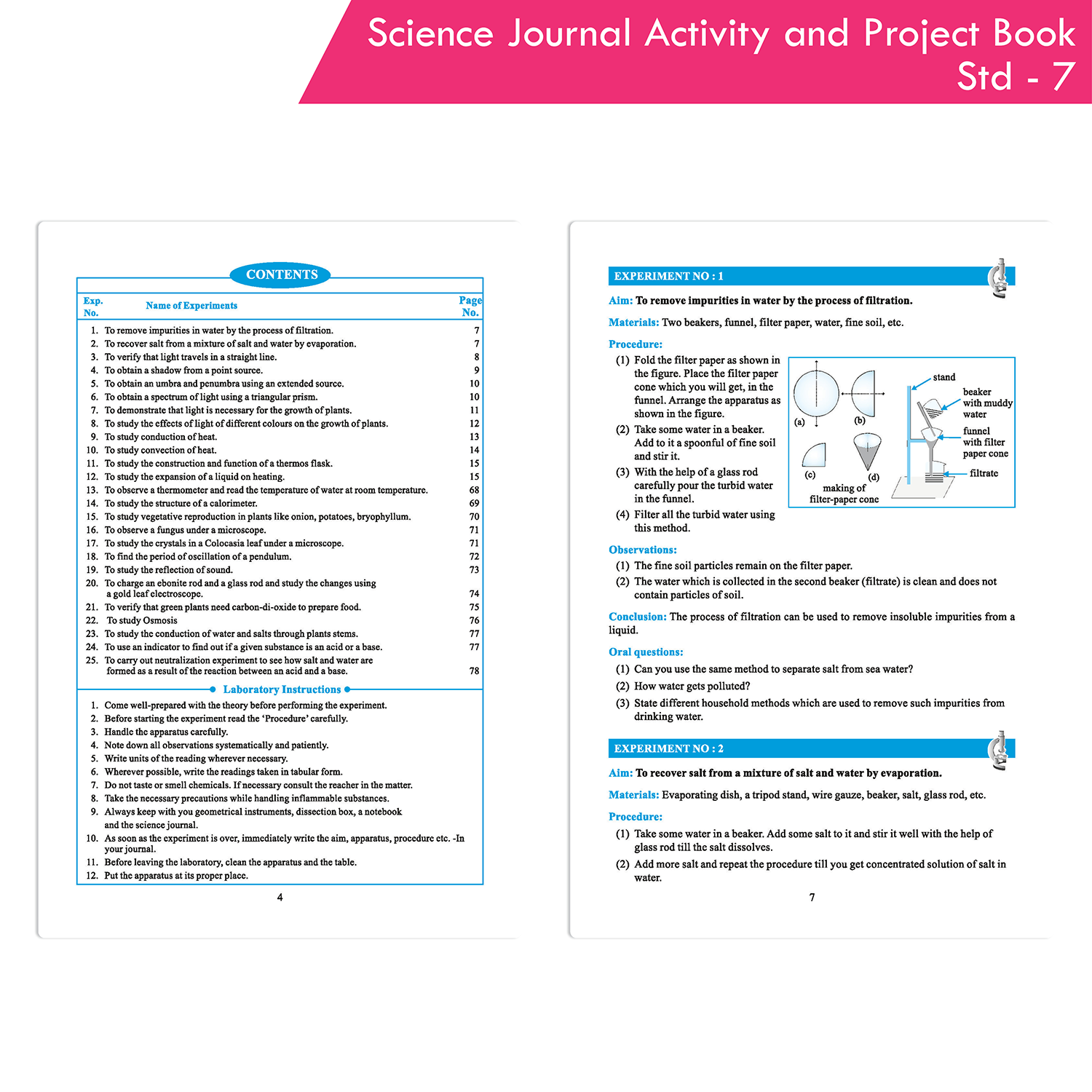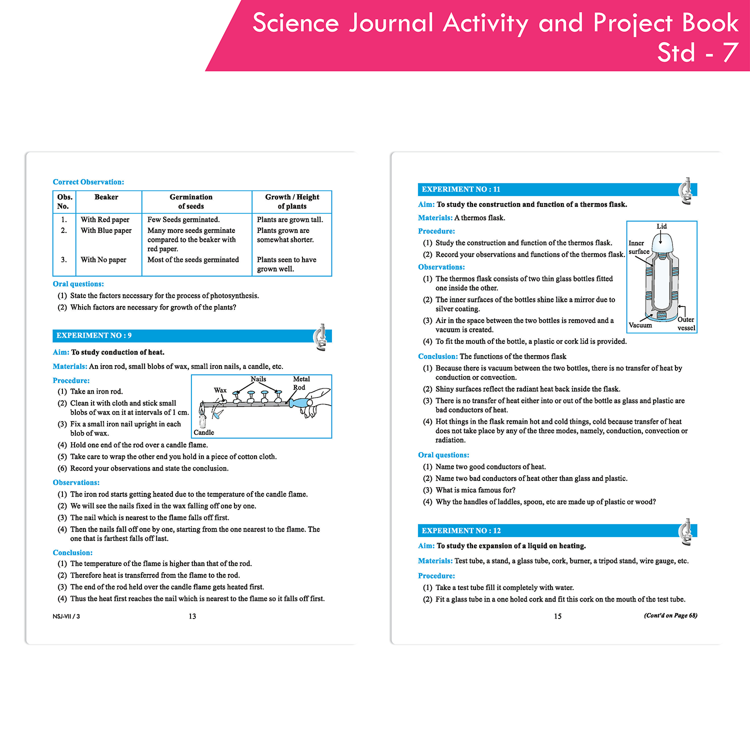 Science Journal Activity and Project Book Standard 7—an all-encompassing educational tool meticulously crafted to align with the revised syllabus and the latest Board directives. This book contains 28 experiments and activities, along with 21 projects, providing comprehensive coverage of the prescribed syllabus. Each experiment is detailed with aim, apparatus, procedure, observations, conclusions, and accurately labeled diagrams, making it an invaluable resource during examinations. The book also includes detailed instructions and useful guidelines for observations and conclusions, ensuring students have a thorough understanding of each experiment.