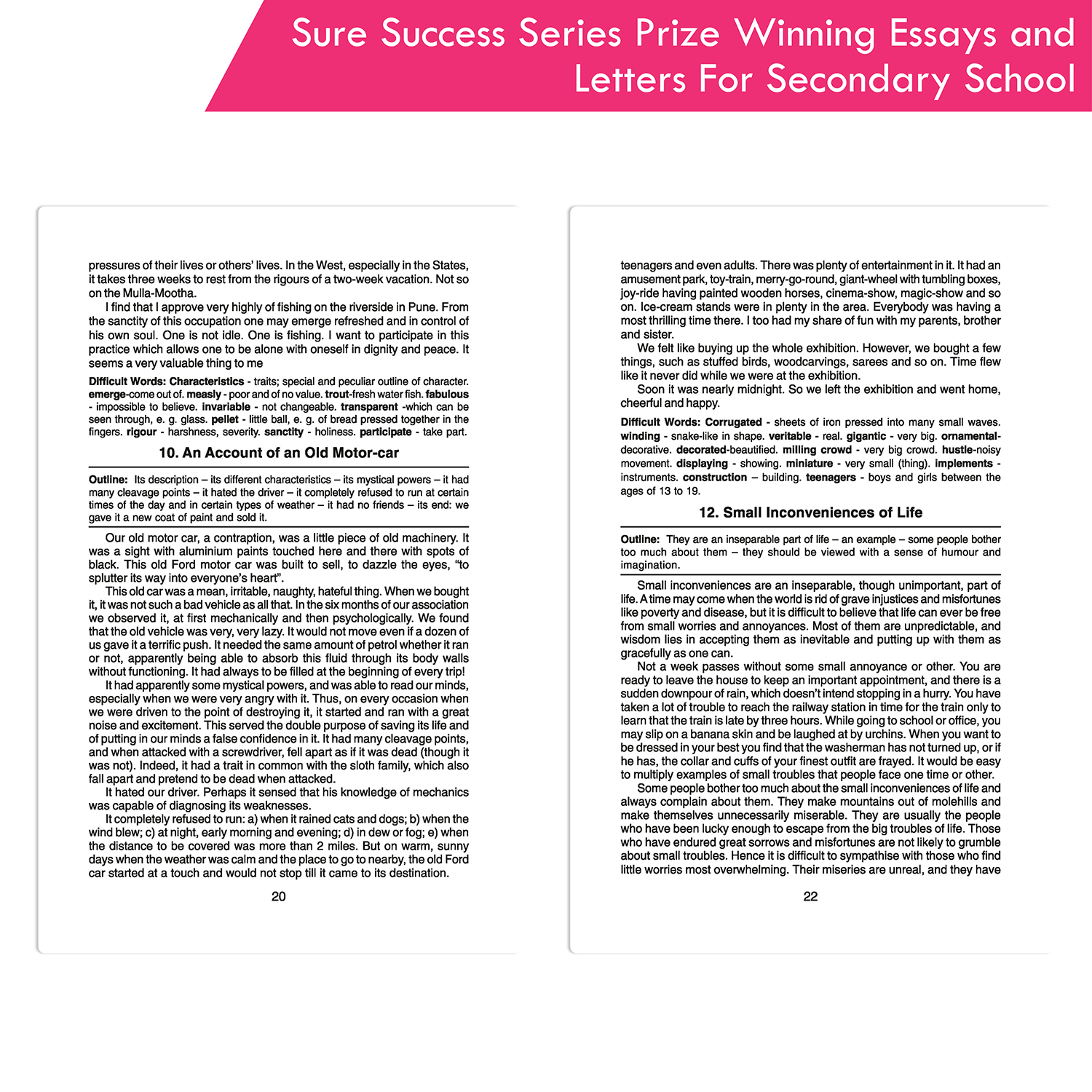 Make writing essays and letters enjoyable for children with the “Sure Success Series Prize Winning Essays and Letters for Secondary School” book. This book helps students improve their language skills through engaging content and clear instructions. It covers a wide range of topics, including how to write descriptive, narrative, reflective, and report-style essays, as well as letter-writing, paragraph writing, story writing, and summary writing.