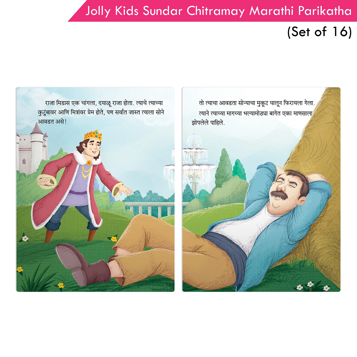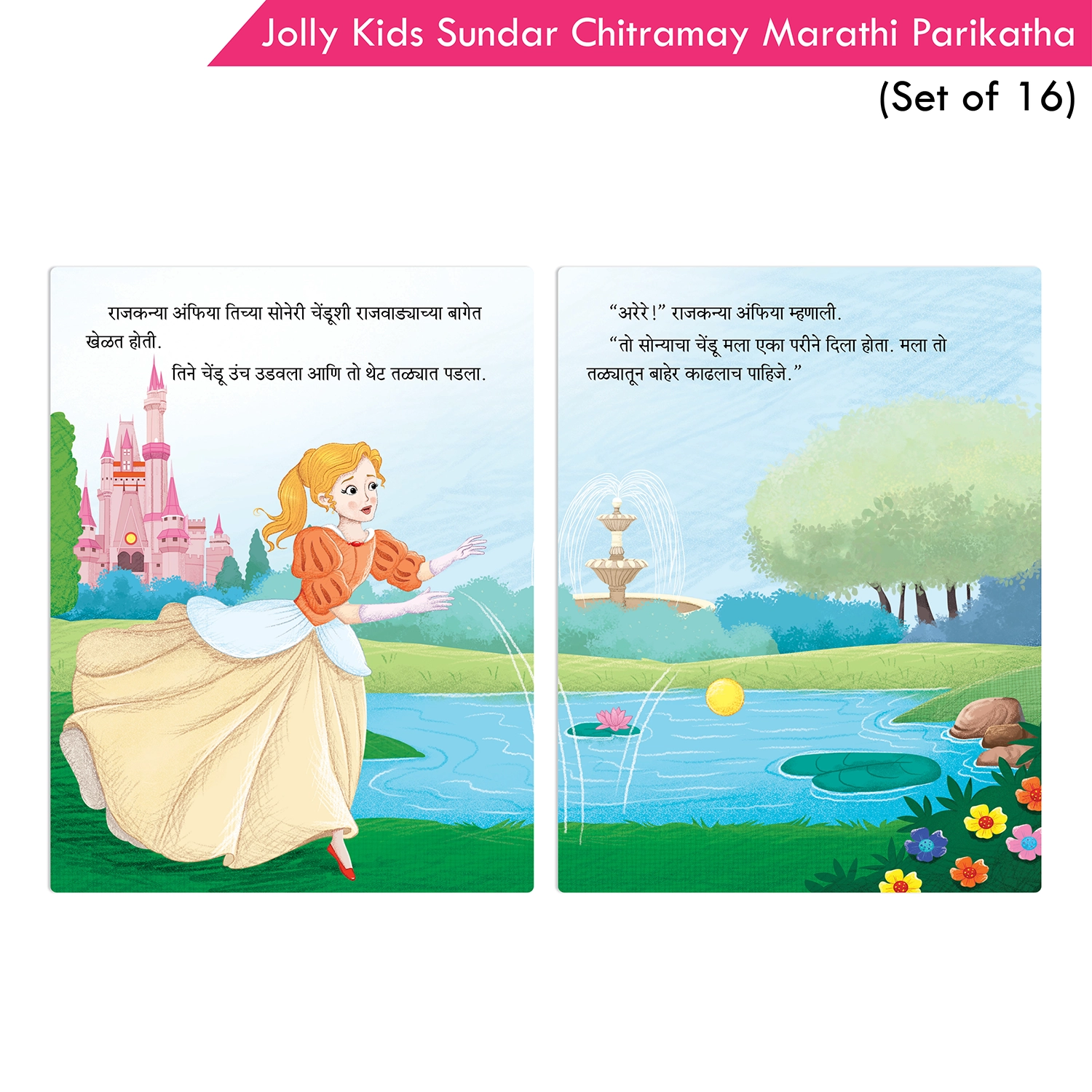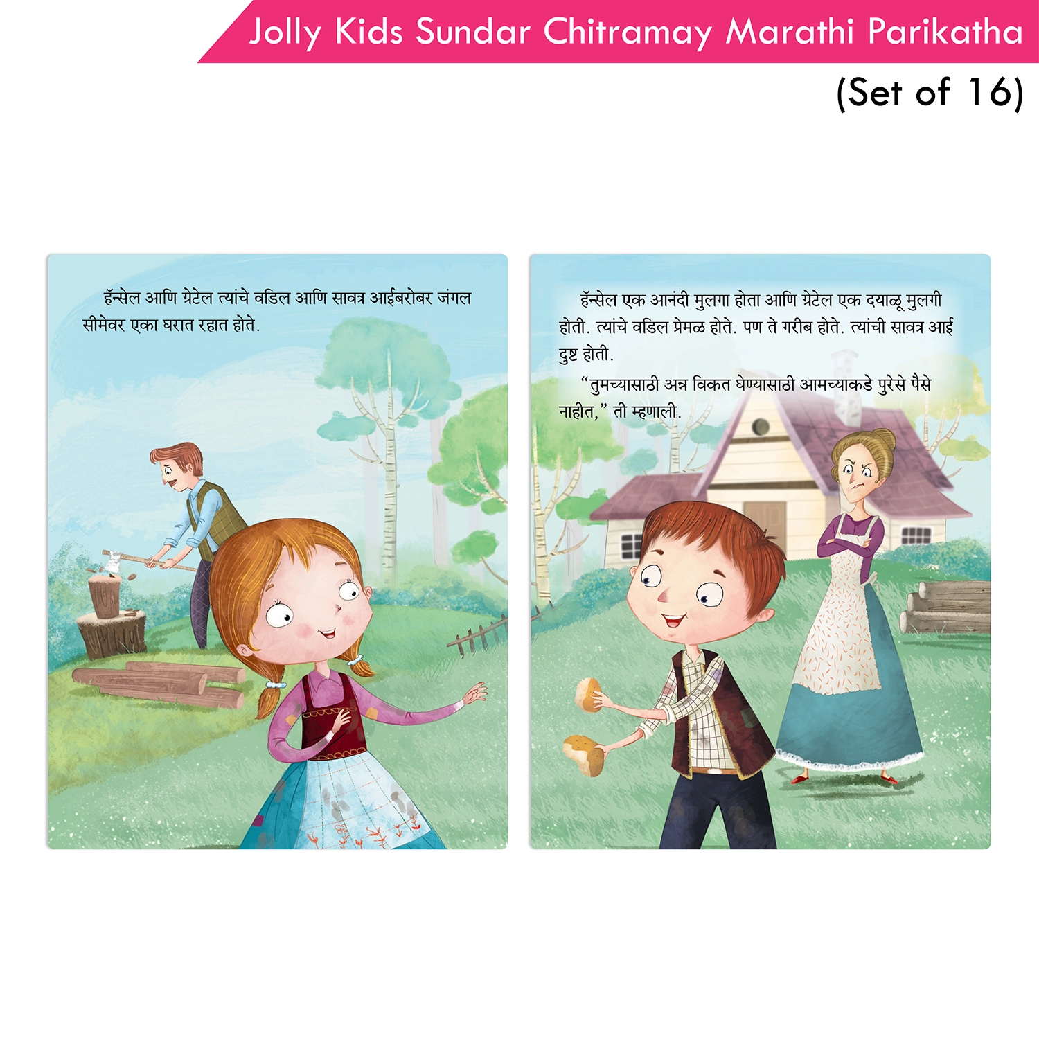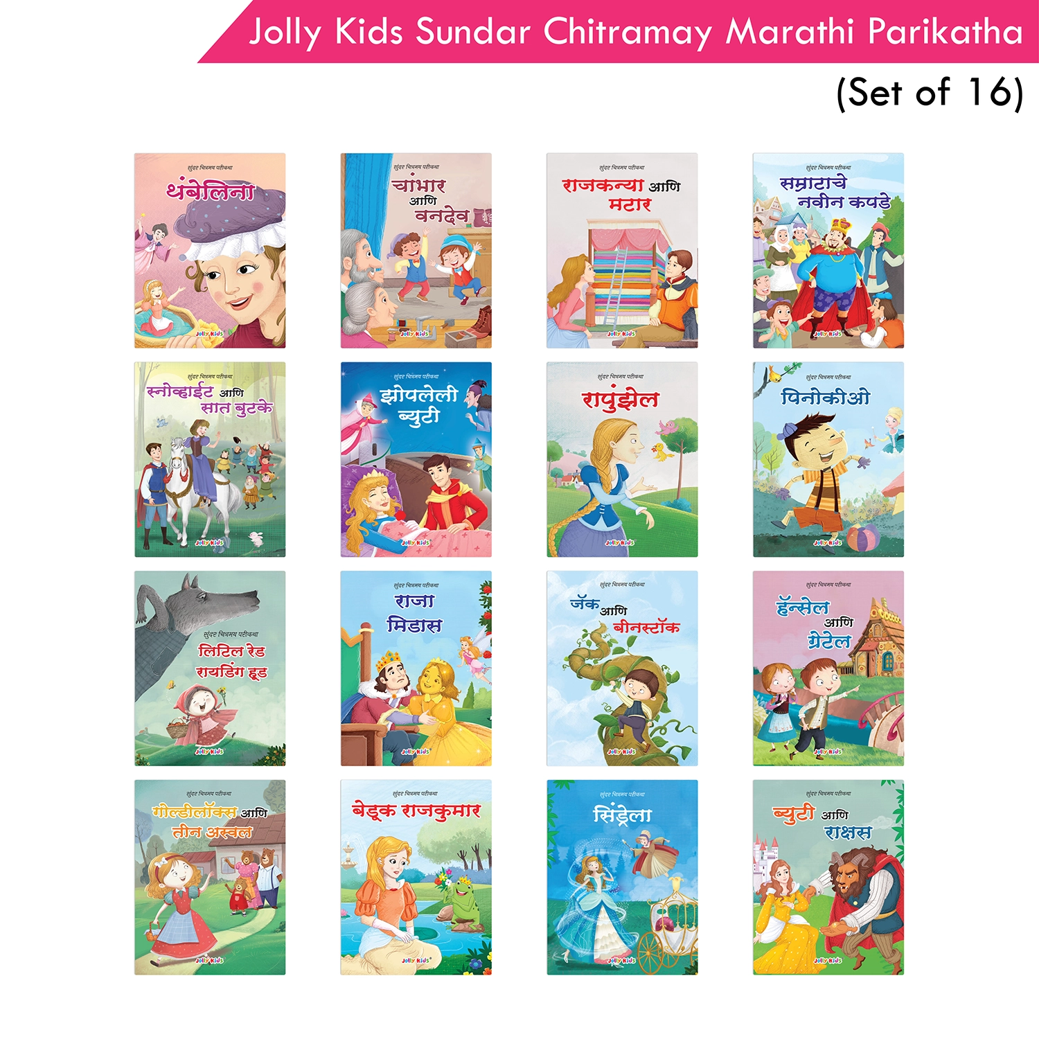 Introducing the “Jolly Kids Sundar Chitramay Marthi Parikatha Set of 16,” a captivating collection of Hindi storybooks designed for children aged 3-8 years. This combo set features 16 enchanting tales: Zopleli Beauty, Little Red Riding Hood, Jack ani Beanstalk, Hansel ani Gretel, Beduk Rajkumar, Cindrella, Thumbelina, Samratache Navin Kapde, Pinocchio, Raja Midas, Chambhar ani Vanadev, Rapunzel, Rajkanya ani Matar, Snow White ani Sat Butke, Goldilocks ani Tin Asvala, and Beauty ani Rakshas. Each story is beautifully crafted to introduce children to the richness of Hindi language and culture, while imparting valuable moral lessons on kindness, courage, perseverance, and the importance of good values. These tales foster character development and ethical understanding, providing young readers with an engaging way to enhance their language skills and develop an appreciation for Hindi literature. Whether as an ideal gift for birthdays or special occasions, this comprehensive set promises to create cherished moments and enrich a child’s literary and linguistic journey.