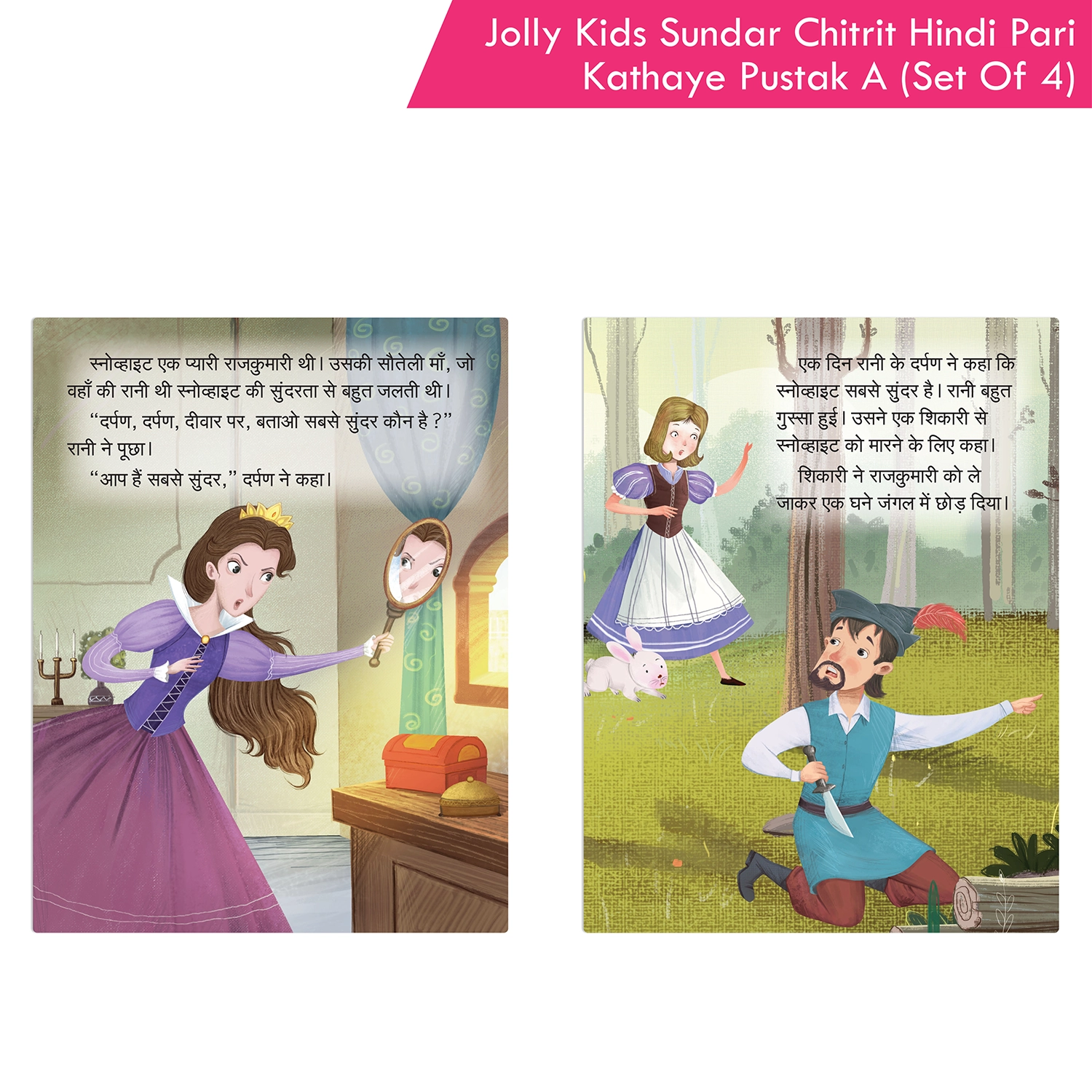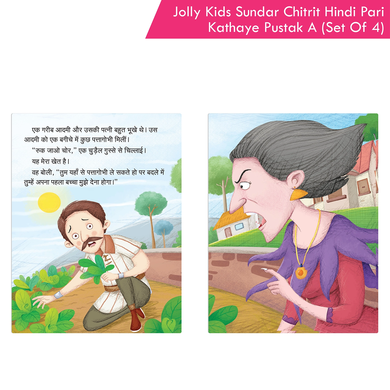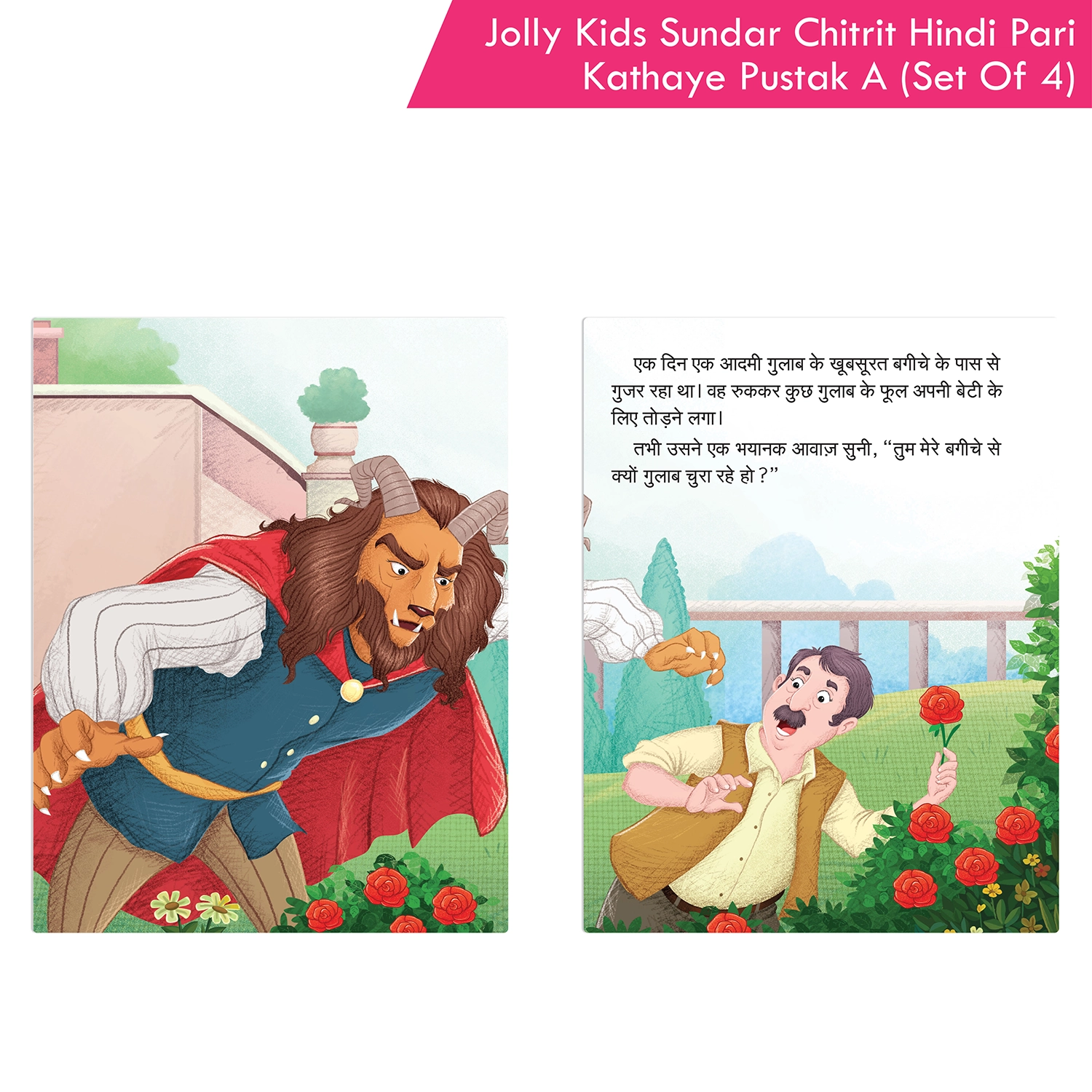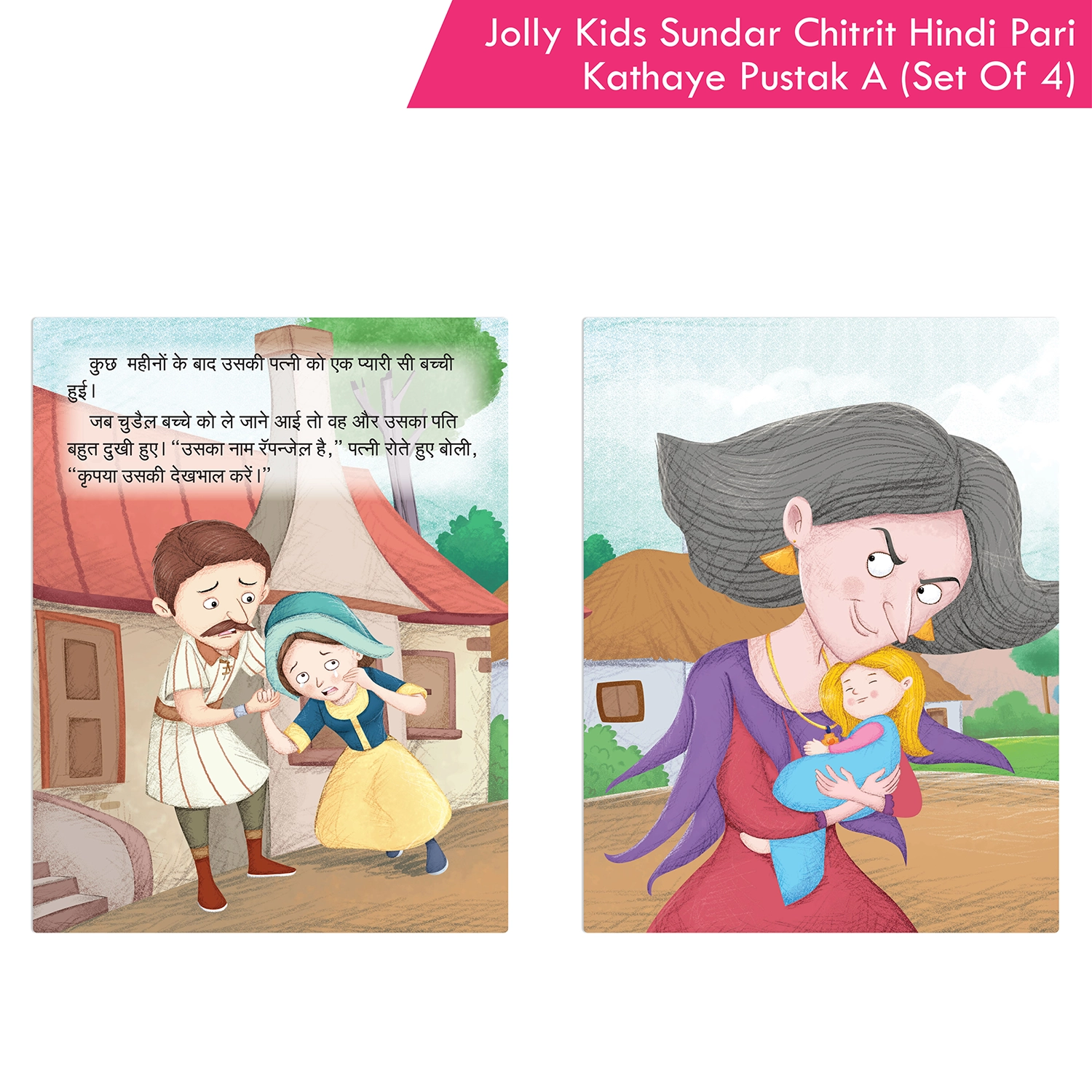 “Jolly Kids Sundar Chitreet Paree Kathaen Hindi Pustak A Set of 4,” a captivating collection of Hindi storybooks designed for children ages 3-8 years. This combo set comprises four enchanting tales: “Byootee Aur Raakshas,” “Raipanzel,” “Sindarela,” and “Sno Vhait Aur Saat Baune.” Tailored to introduce kids to the richness of the Hindi language, each story is not only beautifully written but also imparts different moral lessons, covering a spectrum of themes such as kindness, courage, perseverance, and the importance of good values. These tales contribute to character development and ethical understanding.