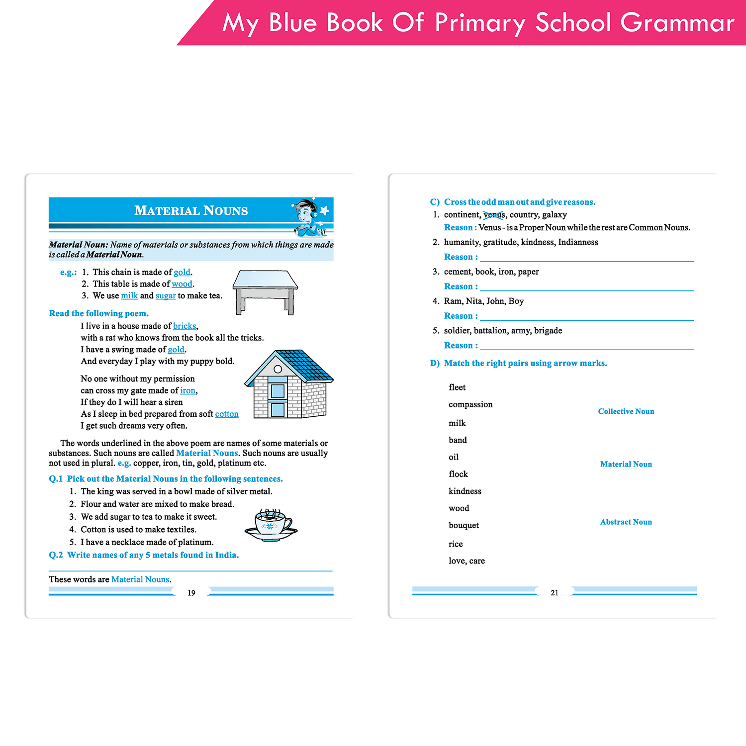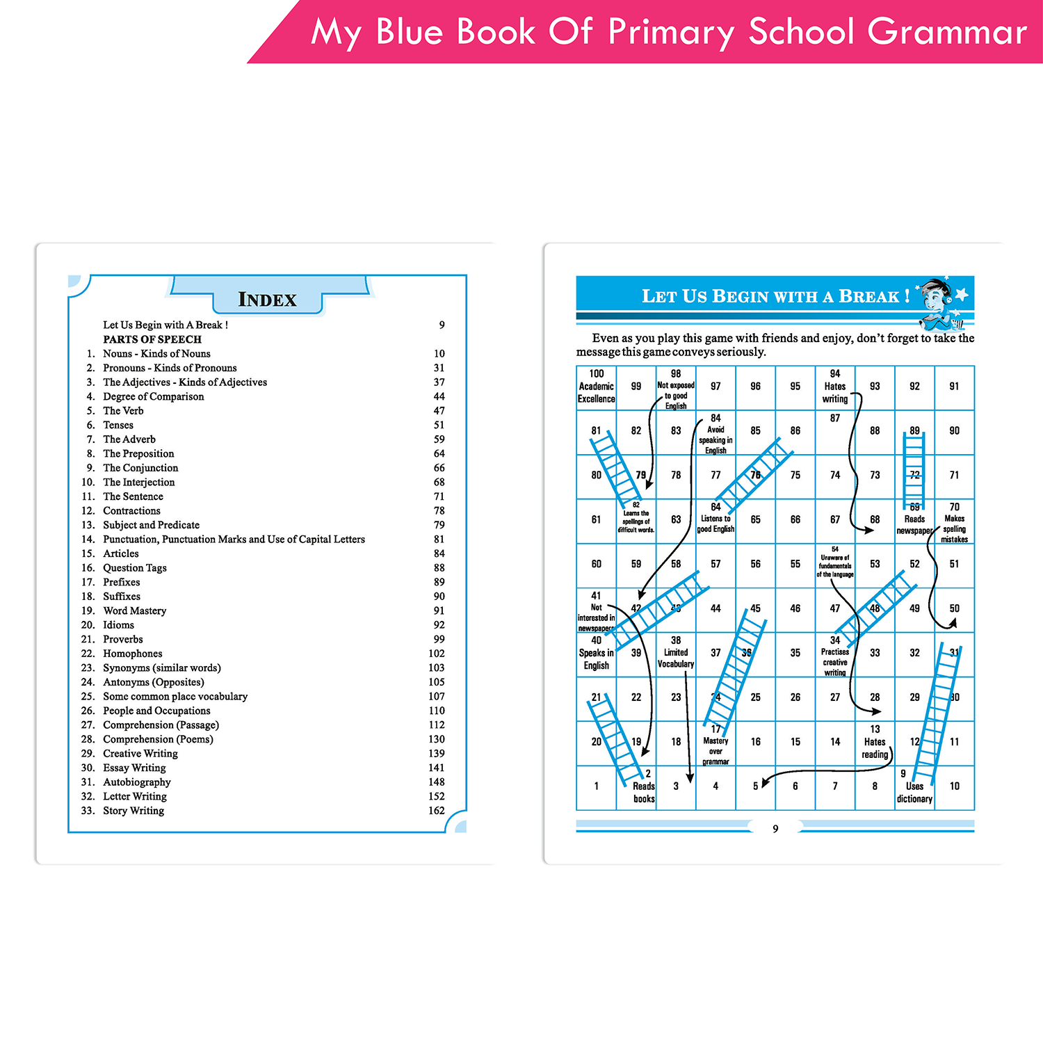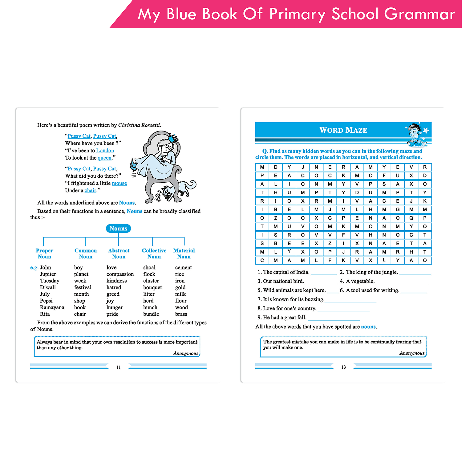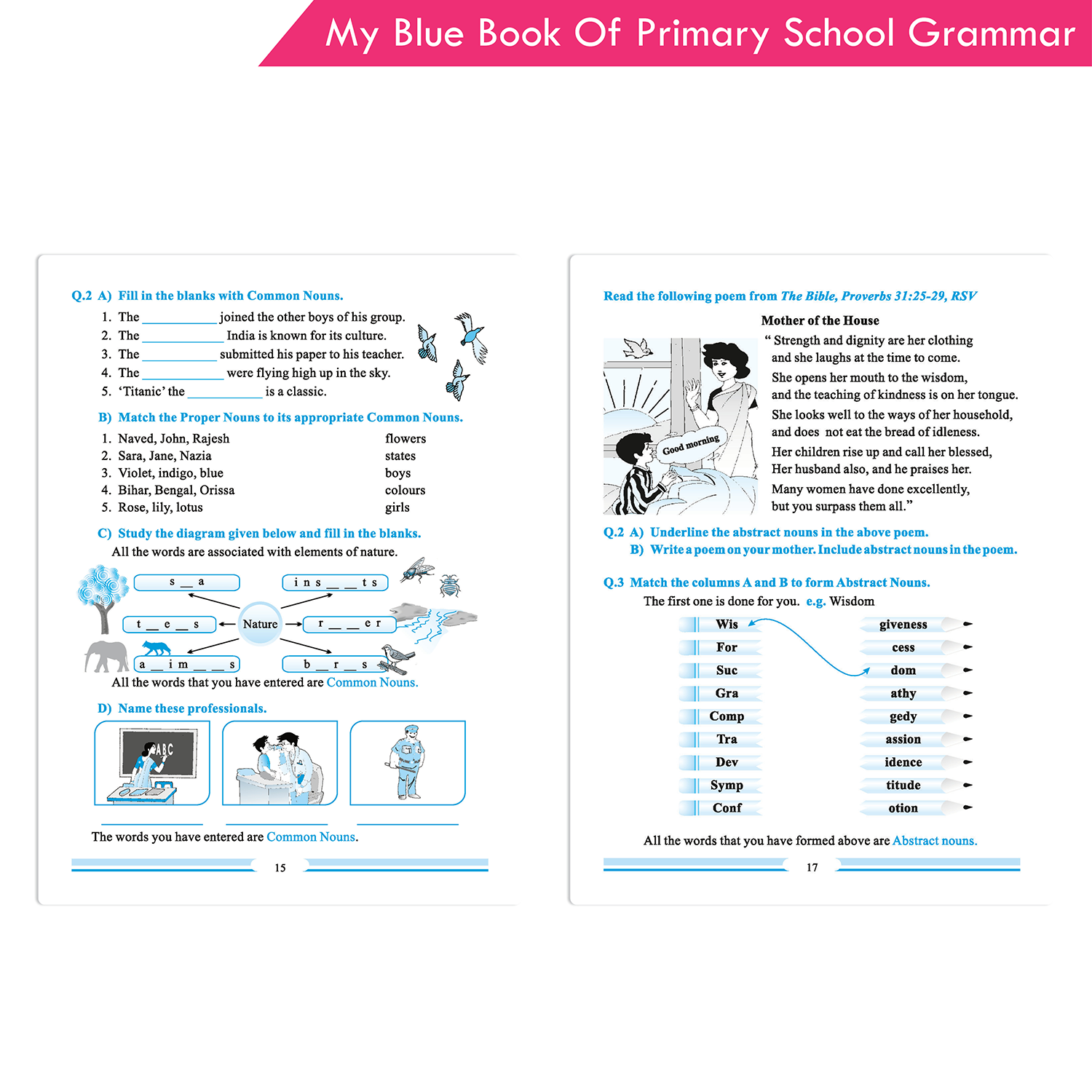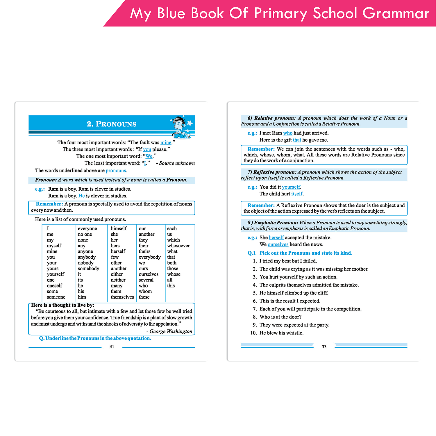 My Blue Book of Primary School Grammar—an activity-oriented textbook designed to make children active participants in their learning journey. This comprehensive and practical grammar book for primary students emphasizes ‘Fundamental Grammar’ in the context of communication, aligning with the current curriculum’s focus. Recognizing that teaching grammar in isolation is ineffective, our book integrates grammar instruction with real-life communication scenarios.