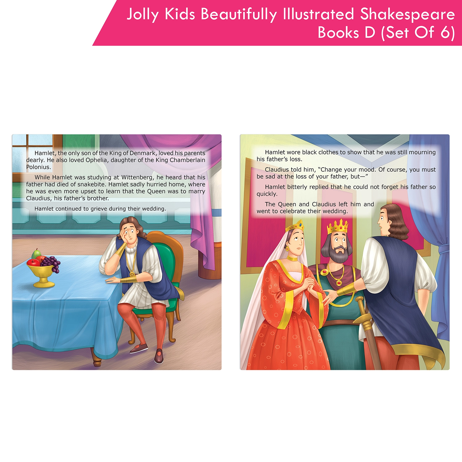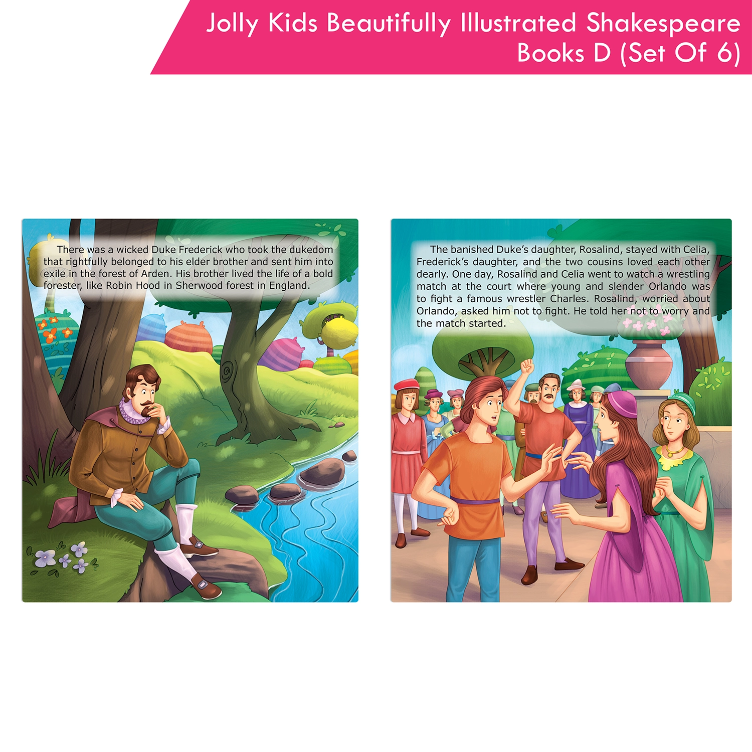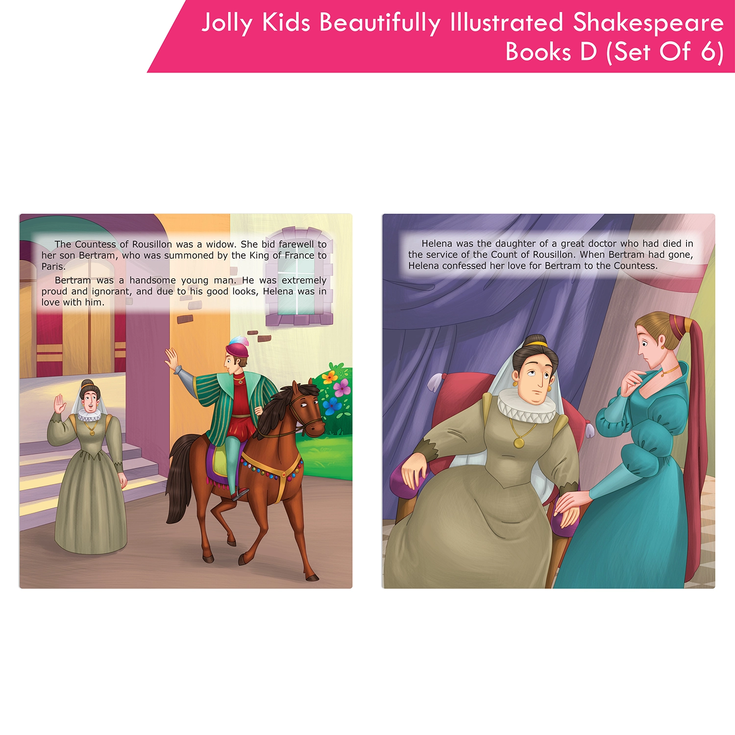 Introducing the “Shakespeare for Young Minds: Jolly Kids’ Illustrated Stories D Combo Set,” a literary journey for young readers aged 6-12. This comprehensive collection features six iconic plays: As You Like It, All’s Well That Ends Well, Hamlet, Macbeth, Romeo and Juliet, and The Merchant of Venice. Each story is designed to strike the perfect balance between educational depth and age-appropriate storytelling, making it suitable for various reading levels within the target age range. The captivating illustrations vividly bring Shakespeare’s characters and imaginary world to life, fostering a deeper understanding and igniting creative imaginations. Whether for independent reading, family exploration, or classroom use, this combo set adapts seamlessly to various learning environments, empowering your child with a deep appreciation for literature. Engaging with Shakespeare at an early age builds confidence and fosters a lifelong love for reading. The set encourages family bonding as you explore the magic of Shakespeare together. Choose the “Shakespeare for Young Minds” Combo Set to provide your child with more than just books—it’s an immersive literary experience that sparks curiosity, nurtures cultural understanding, and fosters a lifelong love for the written word.