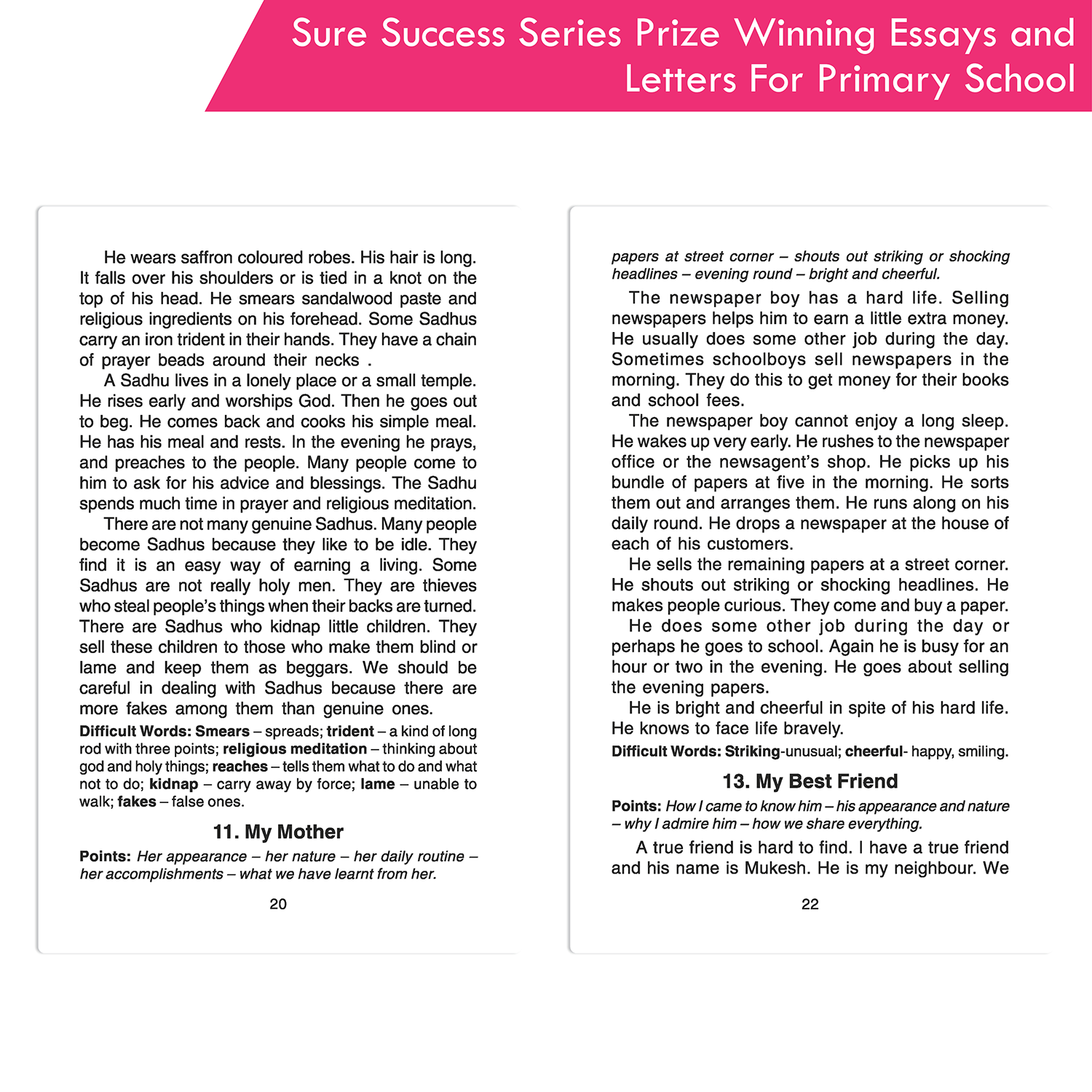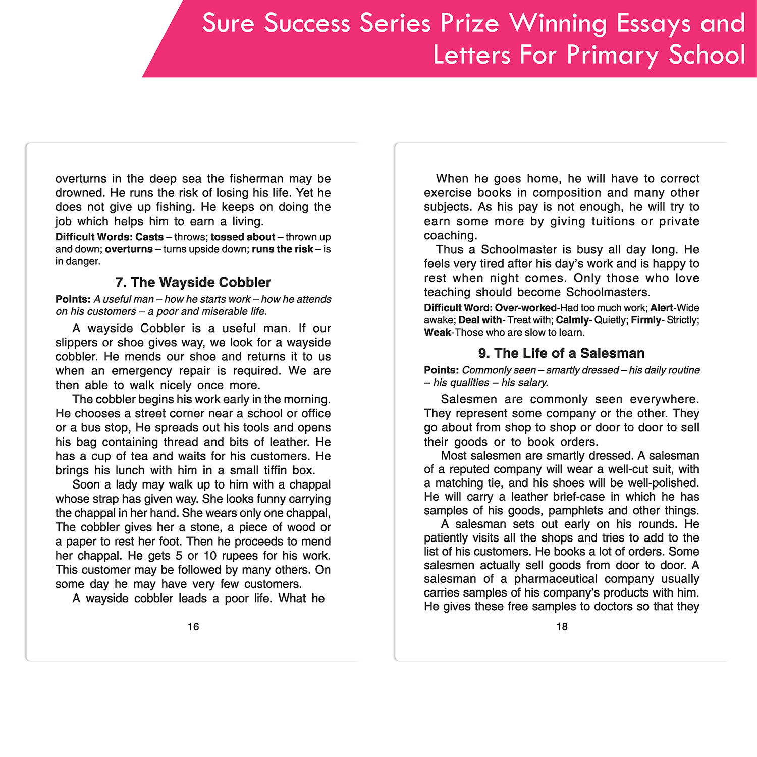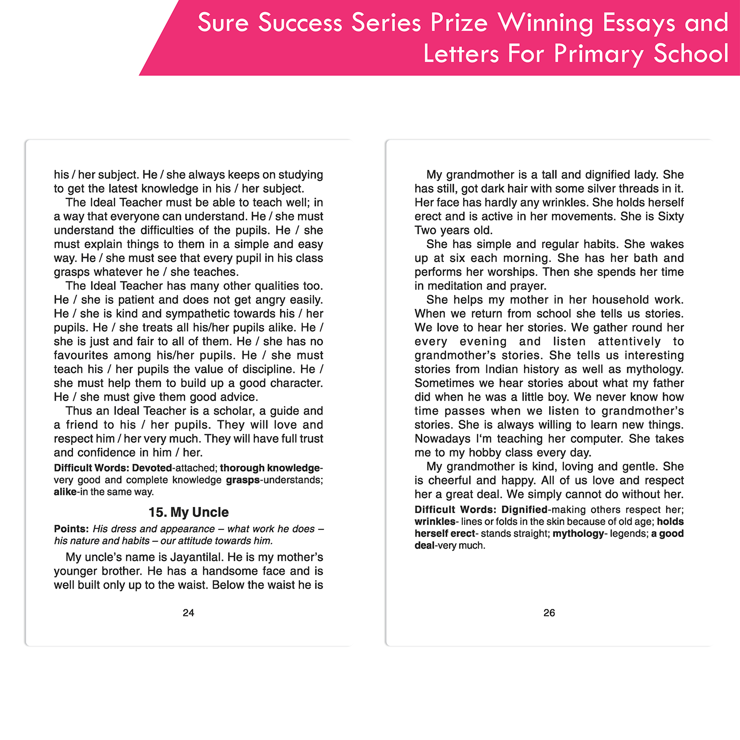 Make writing essays and letters enjoyable for children with the “Sure Success Series Prize Winning Essays and Letters for Primary School” book. This book helps students improve their language skills through engaging content and clear instructions. It covers a wide range of topics, including how to write descriptive, narrative, reflective, and report-style essays, as well as letter-writing, paragraph writing, story writing, and summary writing.
