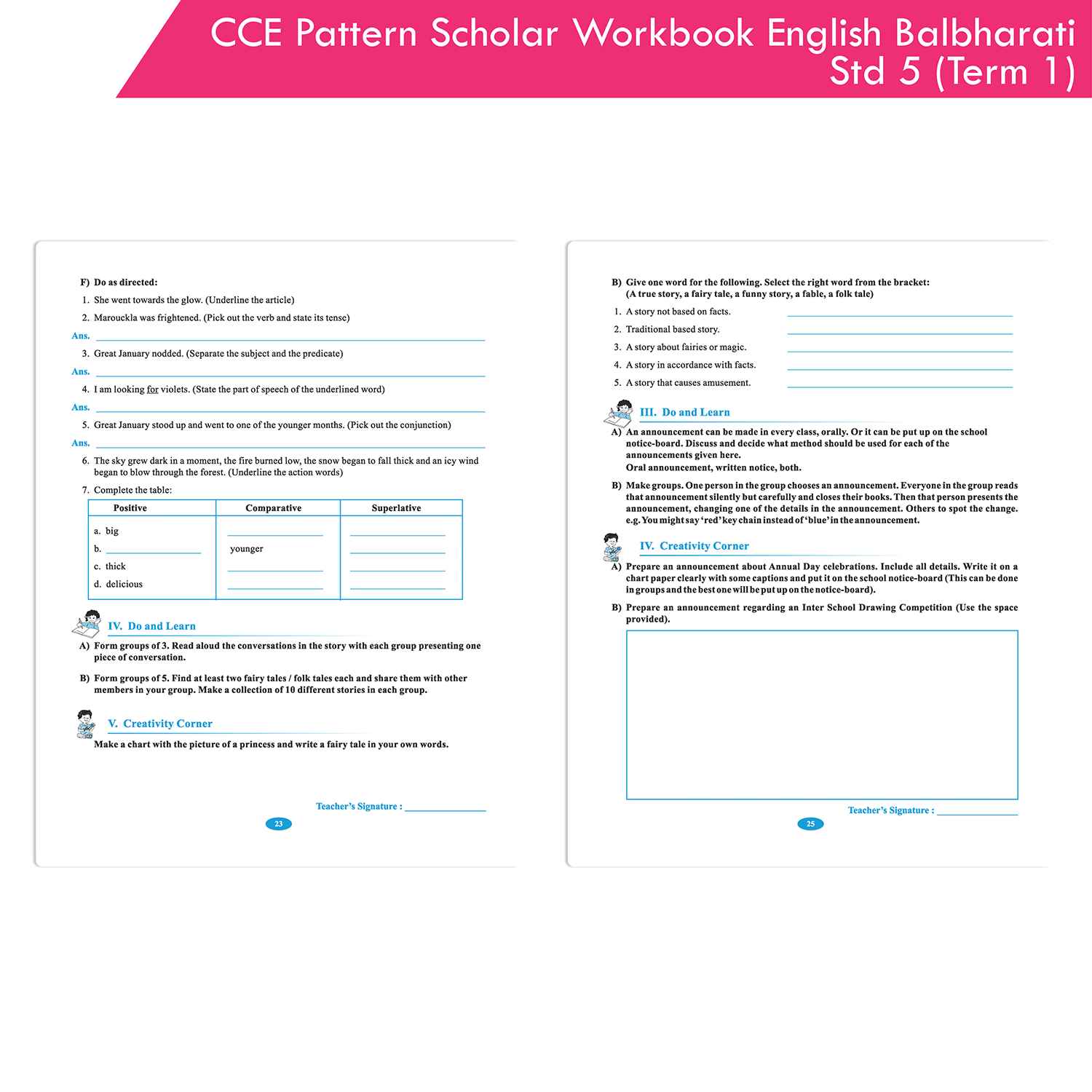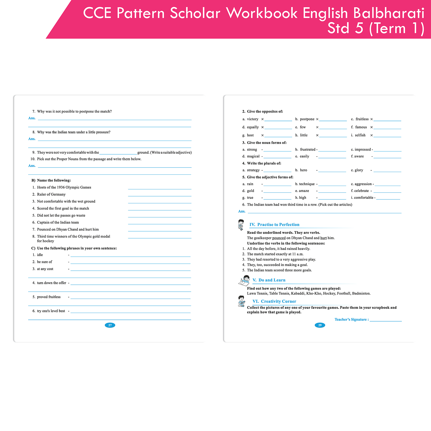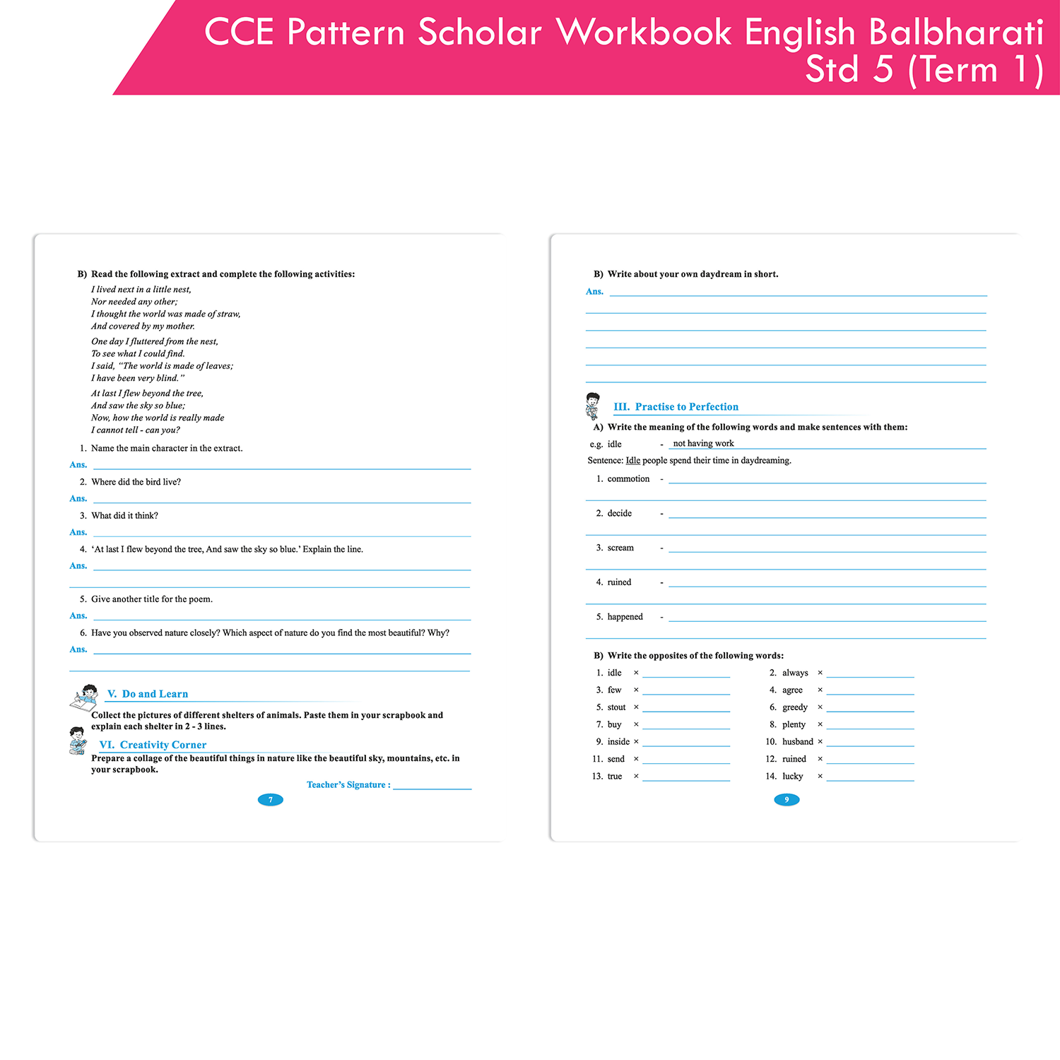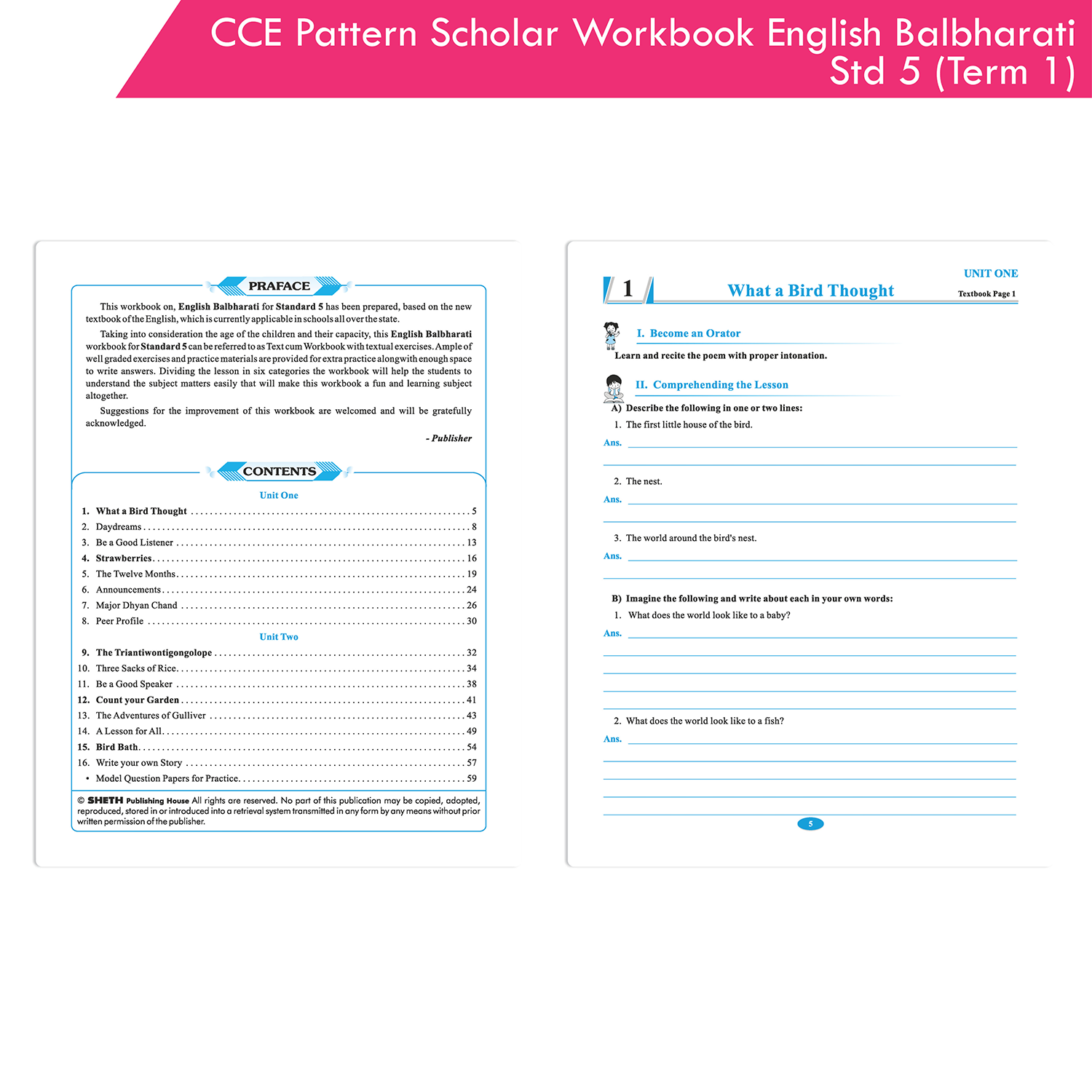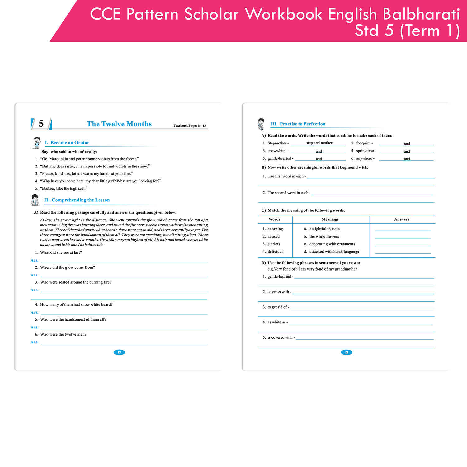 CCE Pattern Nigam Scholar Workbooks English Balbharati Standard 5 Term 1