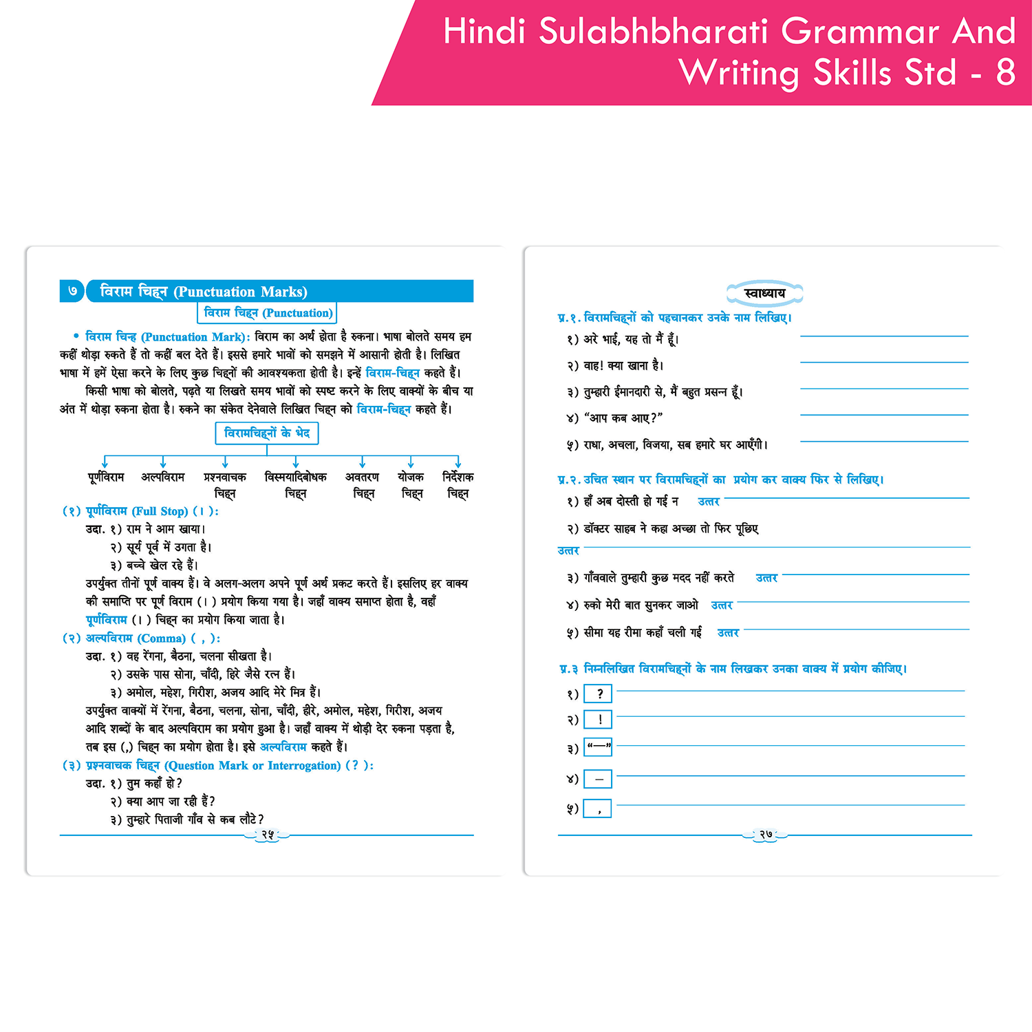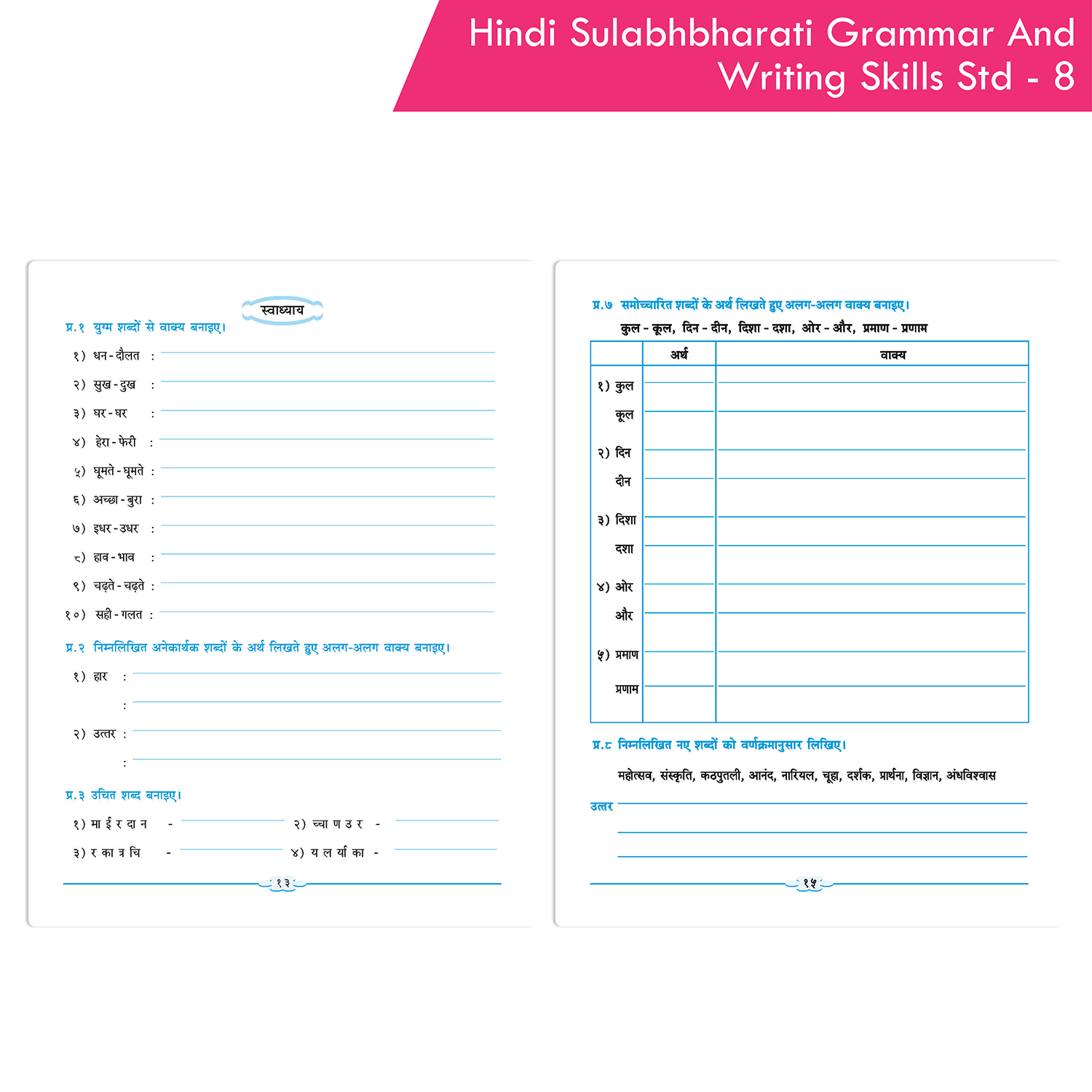 The Nigam Hindi Sulabhbharati (L.L) Grammar And Writing Skills Standard – 8 is an essential resource for developing effective communication skills. This comprehensive book is divided into two parts: Grammar and Writing Skills. The Grammar section covers all necessary topics to ensure a strong foundation in Hindi grammar, including punctuation, spelling, and vocabulary. The Writing Skills section includes exercises on letter writing, story writing, essay writing, dialogue writing, describing pictures, and more. Nigam Hindi Sulabhbharati (L.L) Grammar And Writing Skills Standard provides students with the tools they need to enhance their writing clarity and overall language proficiency.