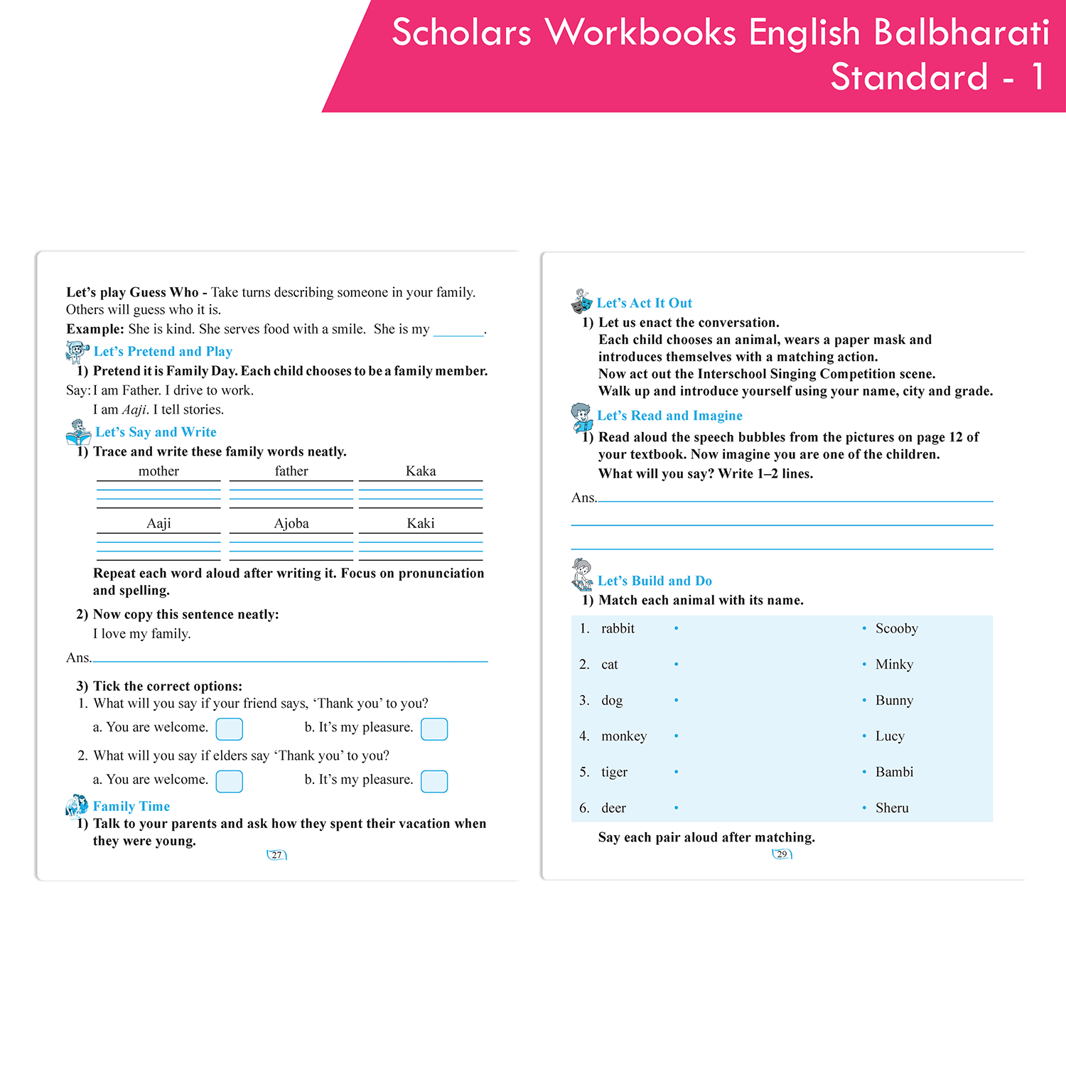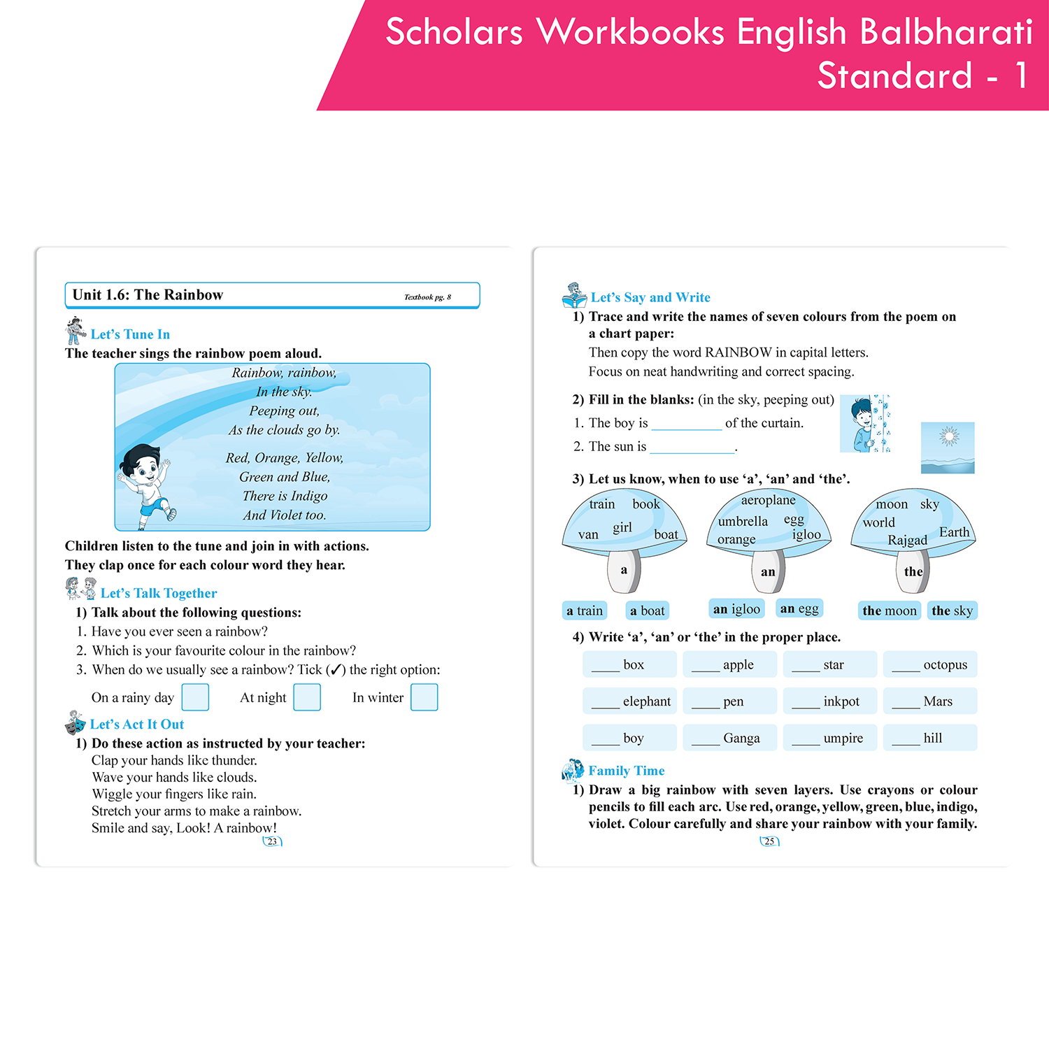 CCE Pattern Nigam Scholar Workbooks English Balbharati Standard – 1