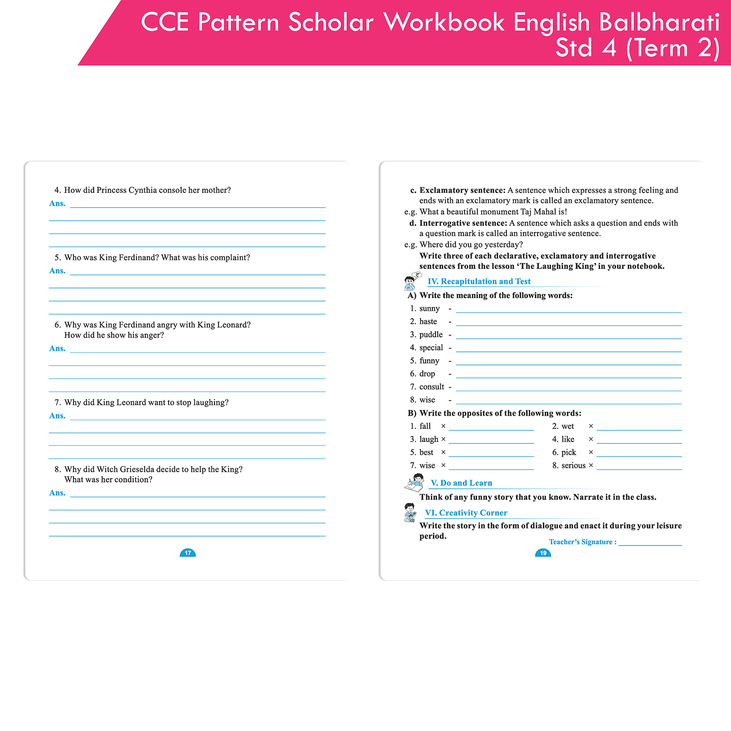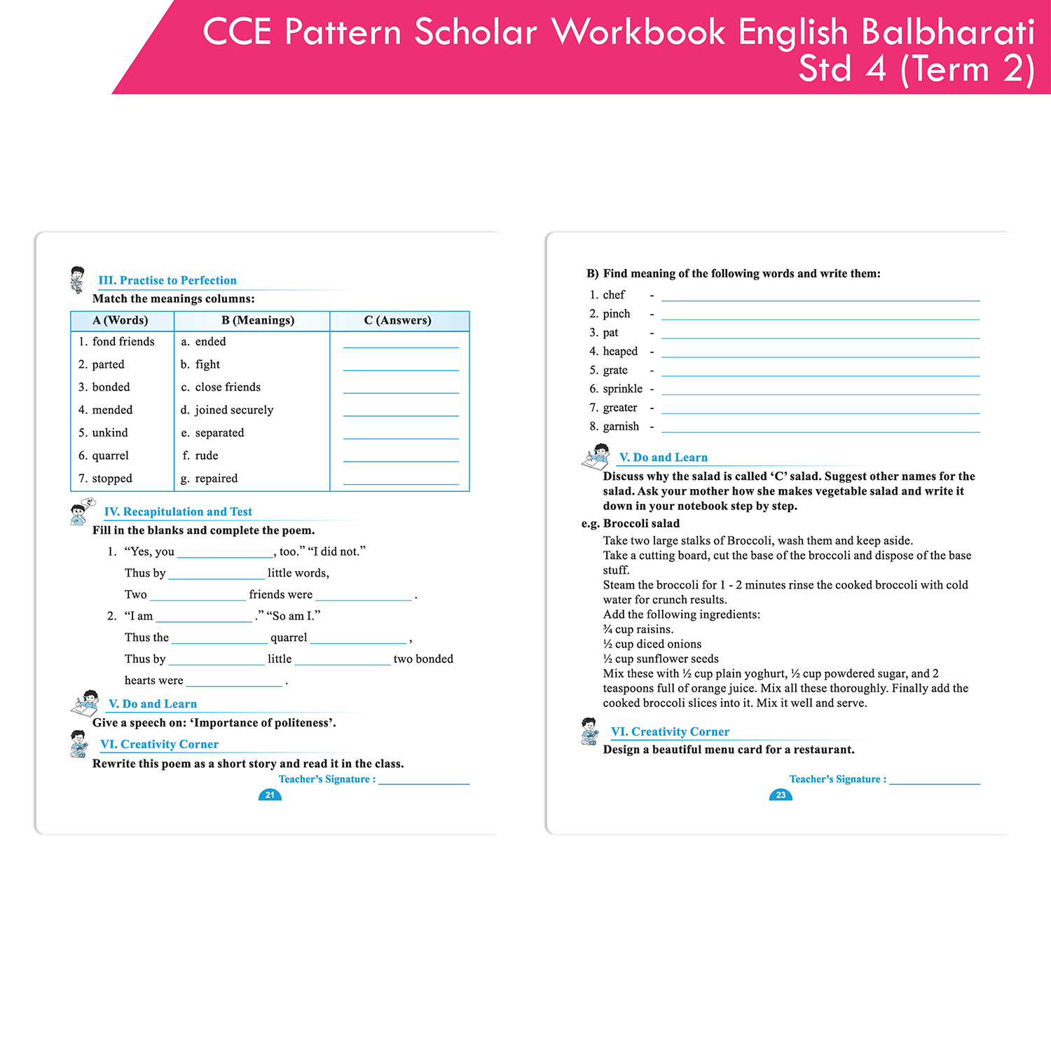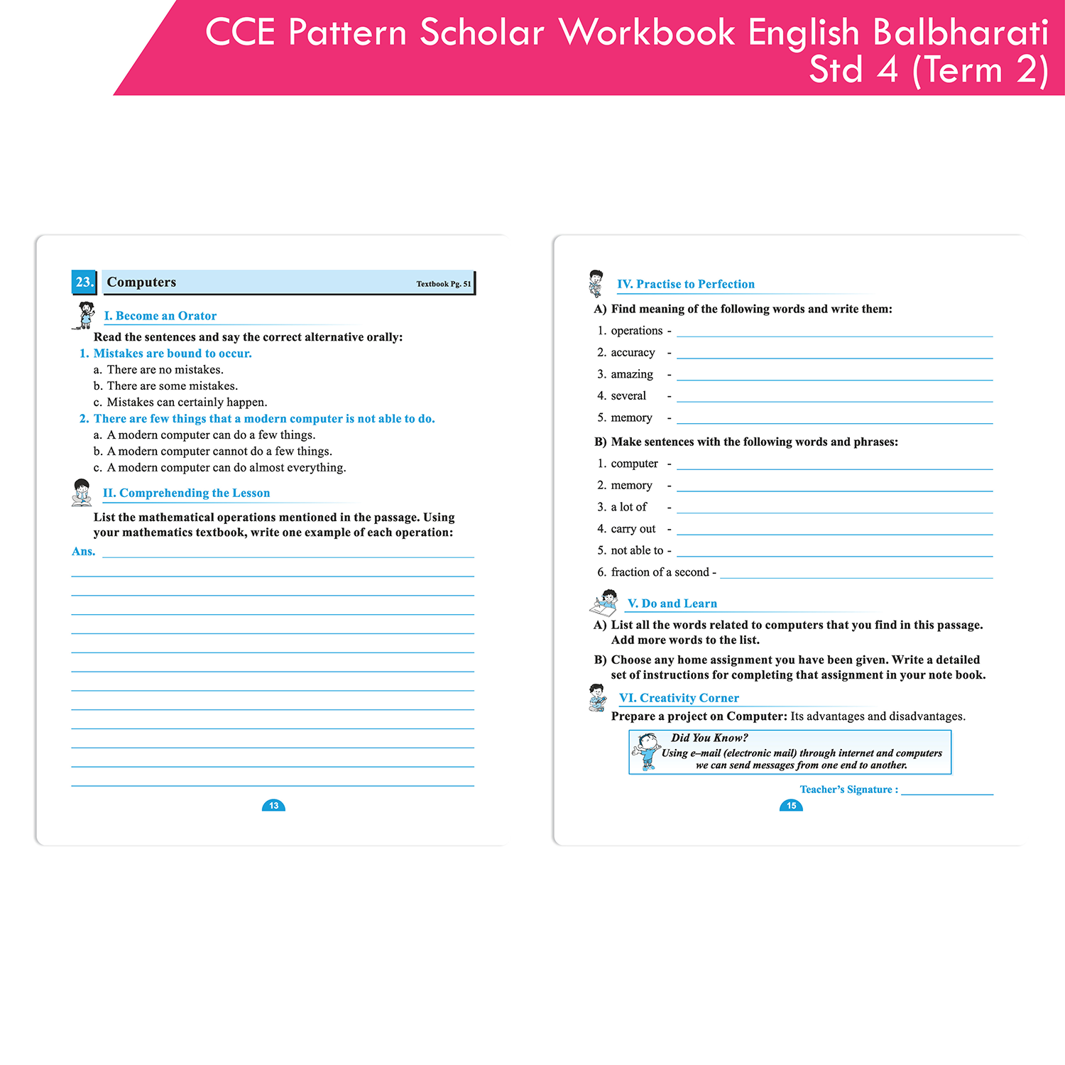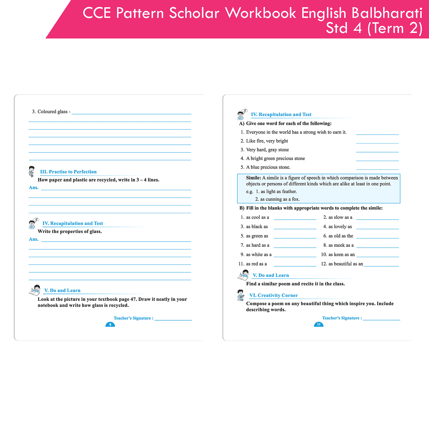 CCE Pattern Nigam Scholar Workbooks English Balbharati Standard 4 Term 2