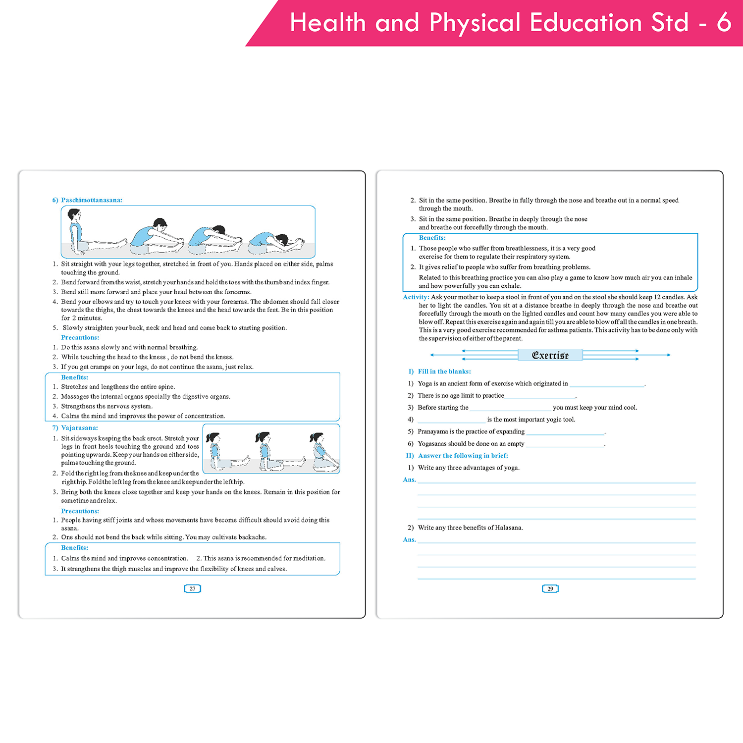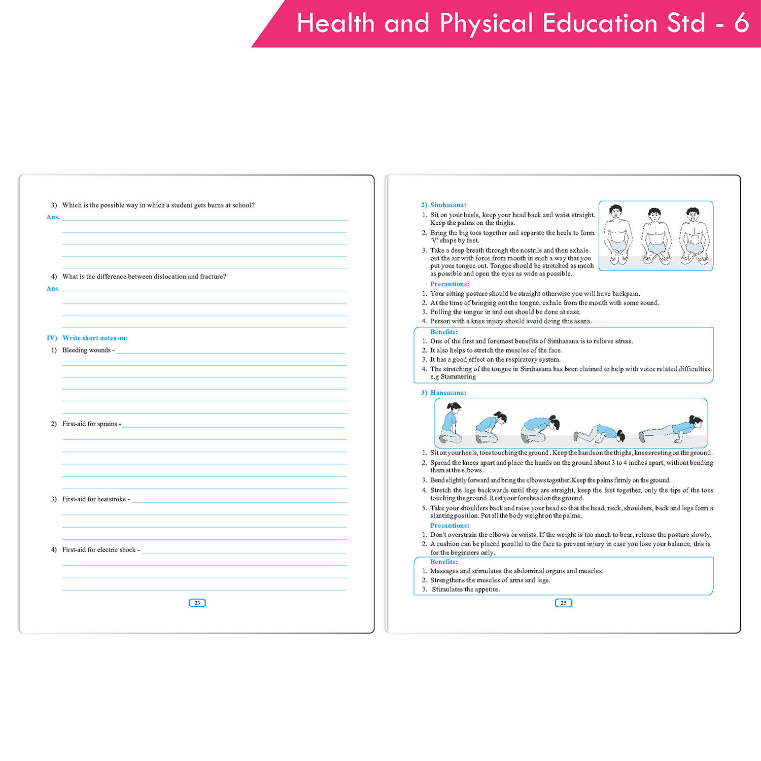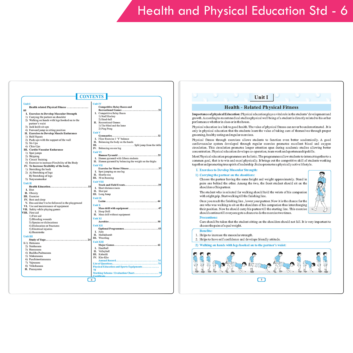 Nigam Health and Physical Education Standard – 6 book presents, as Physical Education and Health Education are inter-related, much importance is given to health and hygiene. ‘A Healthy Body houses a Healthy Mind’, so the saying goes on and it points out to a fundamental truth. For a Healthy and well-nourished body, exercises are very important. In fact for a strong body and a healthy mind, a complete and comprehensive knowledge of Physical Education is the need of today. Keeping this in mind and giving due consideration to the new syllabus set by the Education Board, this book has been carefully designed.
